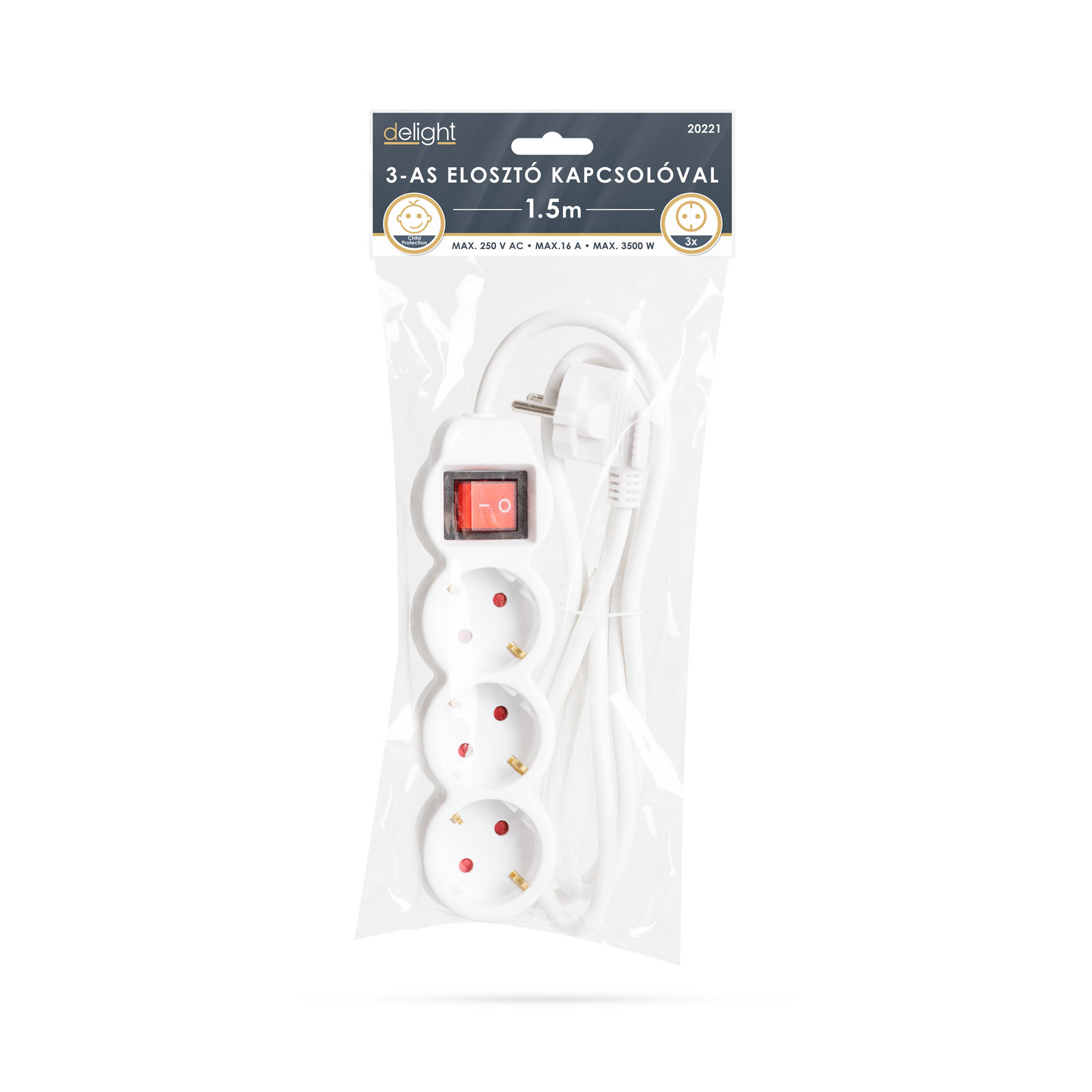 Stekkertype: CEE 7/7 stekker Sockettype: 3 CEE 7/7 stopcontacten met randaarde Max. stroom: 10 / 16 A Nominale spanning: 250 V AC, 50 Hz Kabeltype: H05VV-F 3 x 1,5 mm² Kabellengte: 1,5 meter