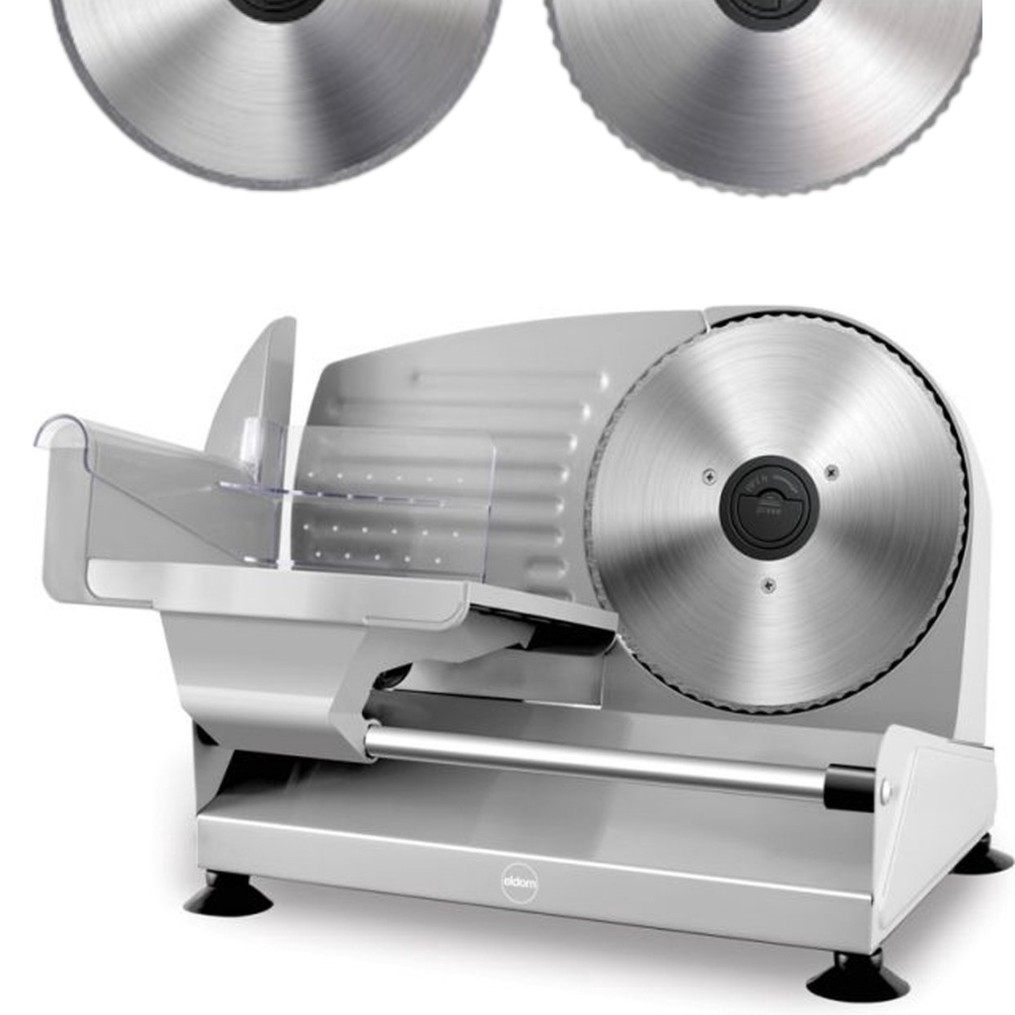 Ga voor een 100% optimale keukenervaring met de elektrische snijmachine van Eldom. Deze keukenmachine kan gebruikt worden als broodsnijder, kaassnijder, vleessnijder of gewoon als allessnijder. De snijmachine is essentieel als je houd van culinair koken. Snijd verschillende producten zoals ham, kaas, kip, brood of zelf groente in ontzettend dunne plakjes. De dikte van de plakjes kun je zelf instellen tussen de 0 en 15mm. Met de snijmachine komen 2 verschillende snijschijven. Een gekartelde schijf voor brood en een gladde snijschijf voor bijvoorbeeld vleeswaren.