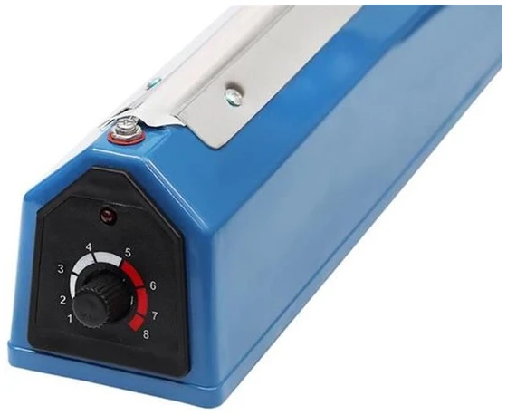 Het bedienen van het sealapparaat is heel eenvoudig. Stel de sealtijd in met behulp van de regelaar. Vervolgens plaats je het te sealen deel van de zak of het folie op het onderste gedeelte. Duw de arm omlaag en het sealen begint. Het sealapparaat heeft een vermogen van 400W en de sealnaad is 2mm breed