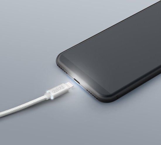 “Lightning” datakabel met verlichte connectoren voor iPhones. Biedt snelle en gemakkelijke gegevensoverdracht en energieoverdracht tussen pc’s, notebooks en iPhones, iPad-apparaten. Dankzij de duurzame coating is het moeilijker te breken in vergelijking met zijn traditionele tegenhangers. Ideaal voor het opladen van iPhone, iPad-apparaten