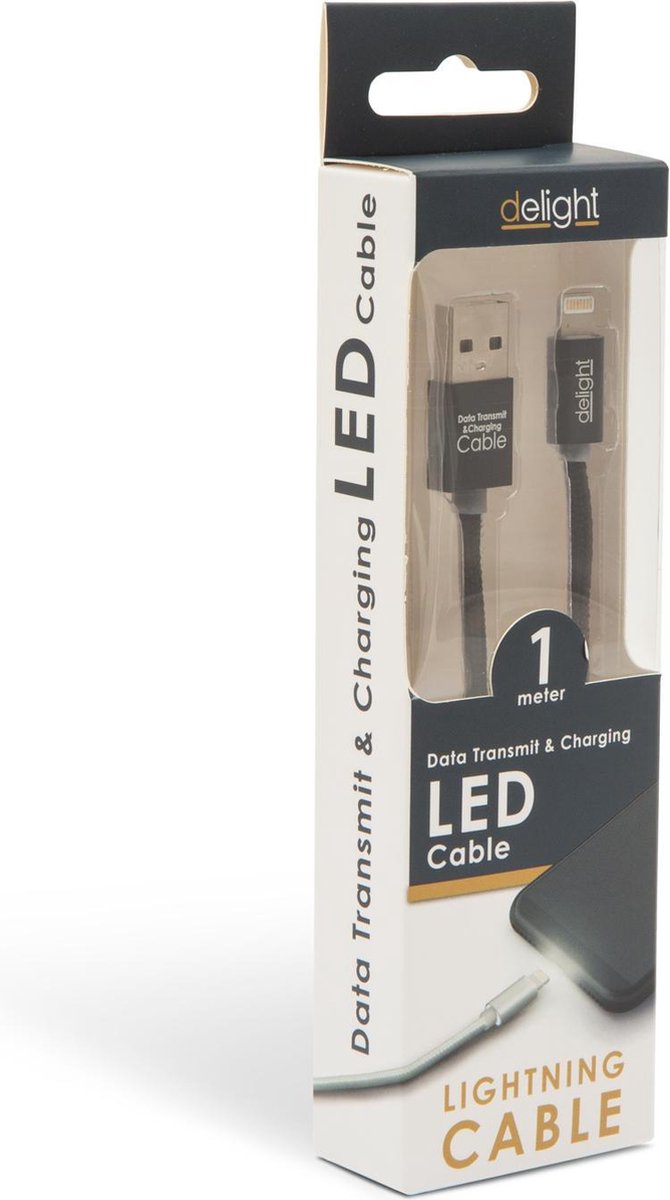 Afbeelding van iPhone Lightning Kabel 1 Meter - Oplaadkabel USB Zwart - met LED verlichting - Nylon Kabel - 4cd7 dbdd 4766