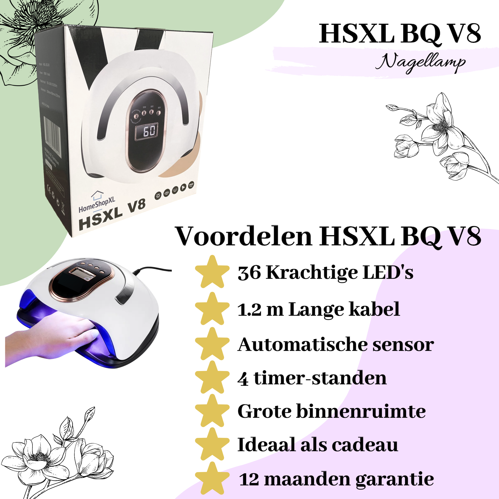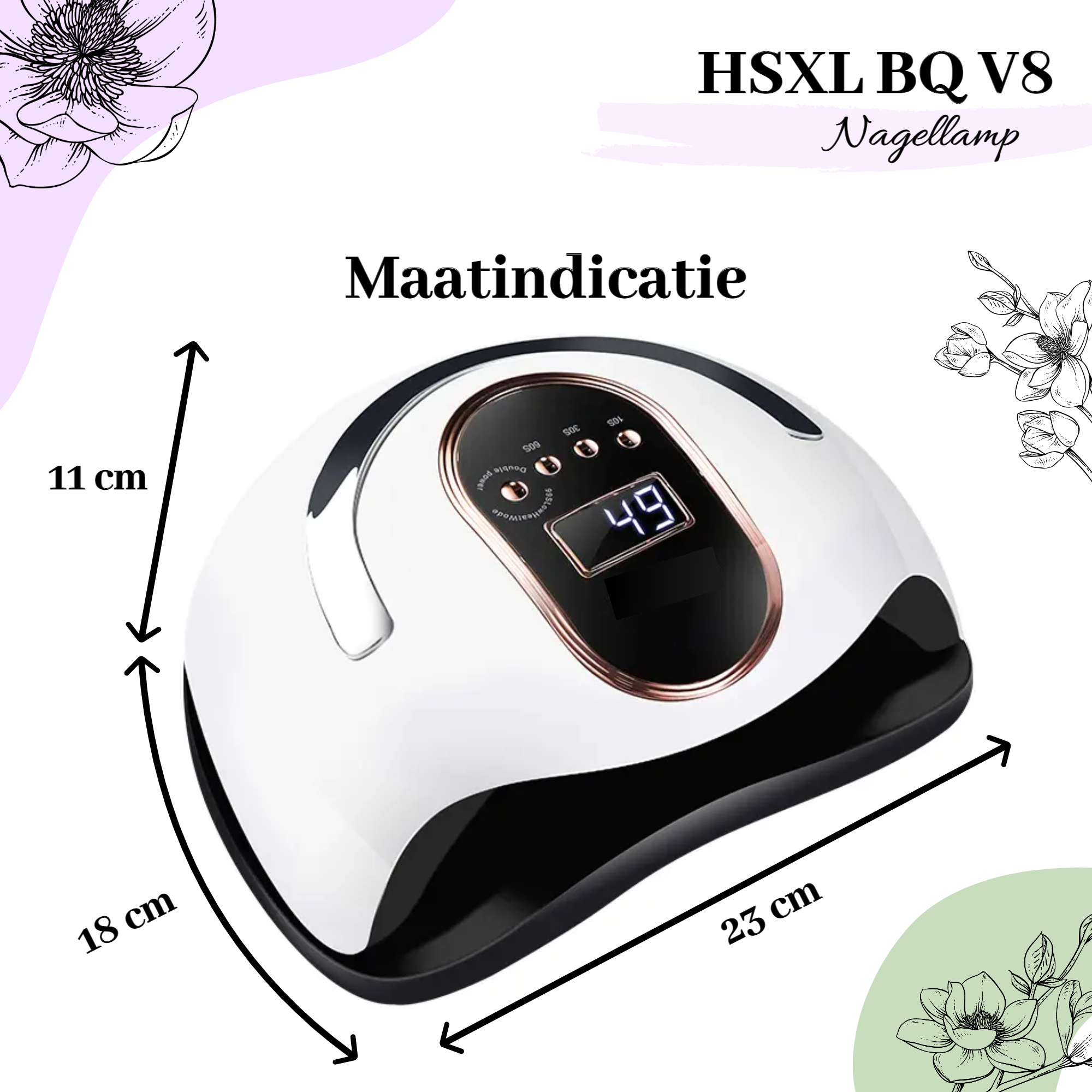 Wil jij gellak snel en professioneel laten uitharden? Met de HSXL V8 nageldroger / nagellamp droog je jouw gelnagels binnen enkele seconden. Dankzij de 36 krachtige LED-lampjes met maar liefst 168 watt vermogen geniet je van een snelle, gelijkmatige en langdurige uitharding, net als in de salon.