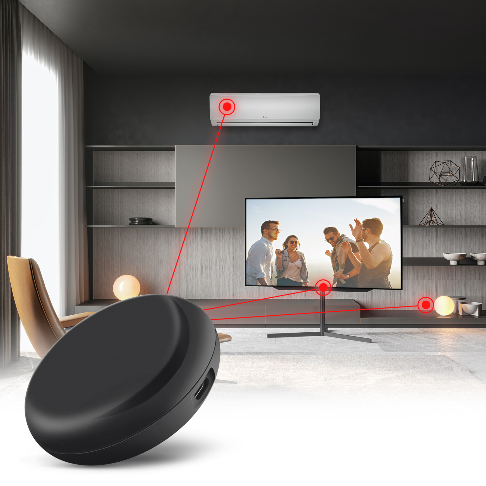 Bedien elk apparaat met afstandsbediening met je smartphone. Je kunt alle IR-afstandsbedieningen vervangen door dit apparaat. Met behulp van de app kun je zelfs je apparaten tegelijkertijd in- en uitschakelen. Dit is handig voor bijvoorbeeld een tv, geluidsinstallatie, binnenunit, maar het kan ook geschikt zijn voor het bedienen van airconditioners, ledstrips, ventilatoren en vele andere apparaten. Til het comfort in huis naar een hoger niveau door de airconditioning aan te zetten wanneer je thuiskomt, zodat je in de zomer wordt begroet door een koel huis. Het apparaat kan een infraroodsignaal in 360° uitzenden, waardoor je apparaten in de hele kamer kunt bedienen. Een standaard 5V USB-poort is voldoende voor de stroomvoorziening (kan indien nodig ook met een stroomadapter worden gebruikt).