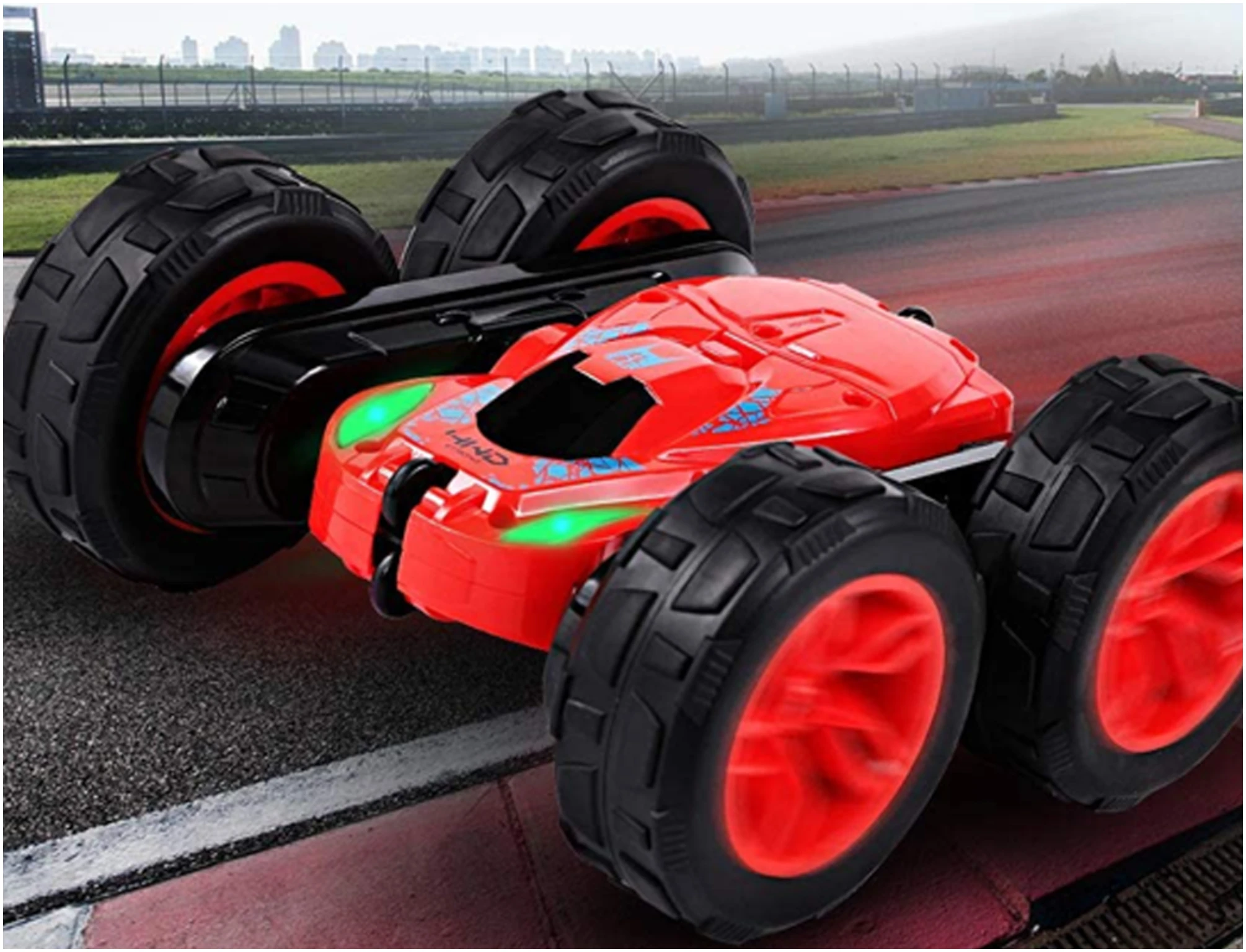 De auto beschikt zelfs over verlichting! De ene zijde heeft rode koplampen en de andere zijde heeft groene koplampen! Hierdoor lijkt het nog cooler als de lampen uit zijn of als het schemerig wordt!