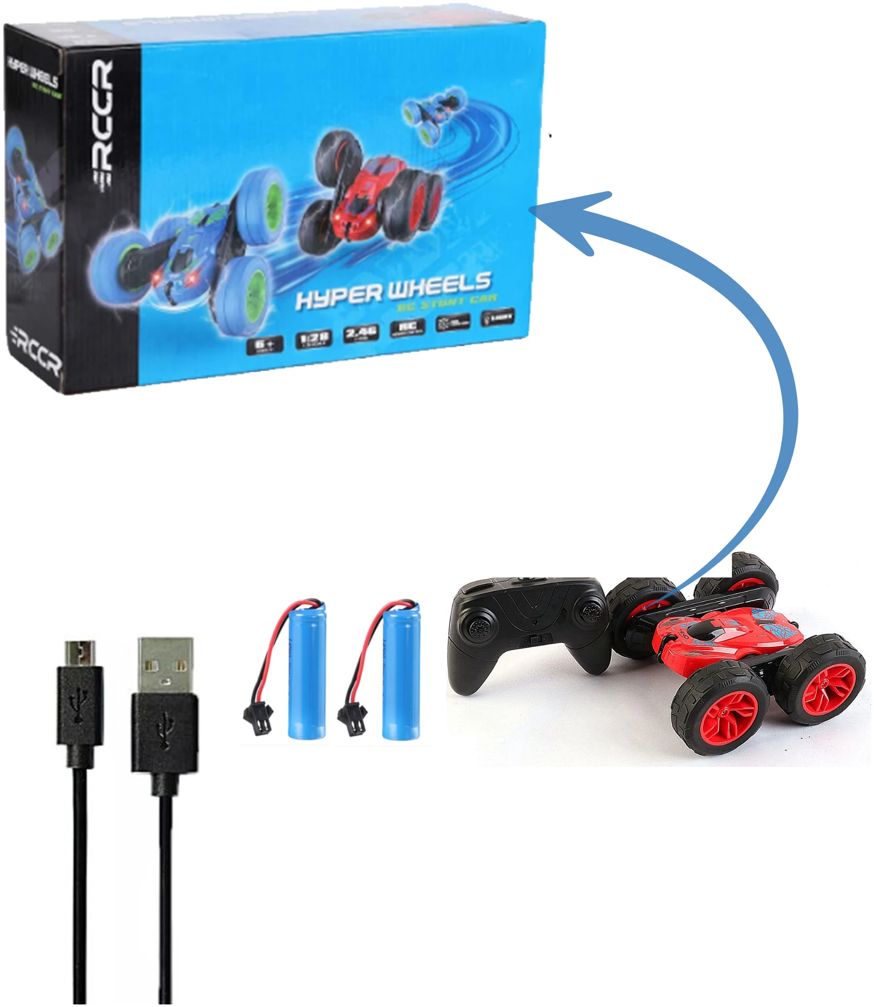 - Inclusief: USB oplaadkabel, Controller, Handleiding, RC Stunt Car