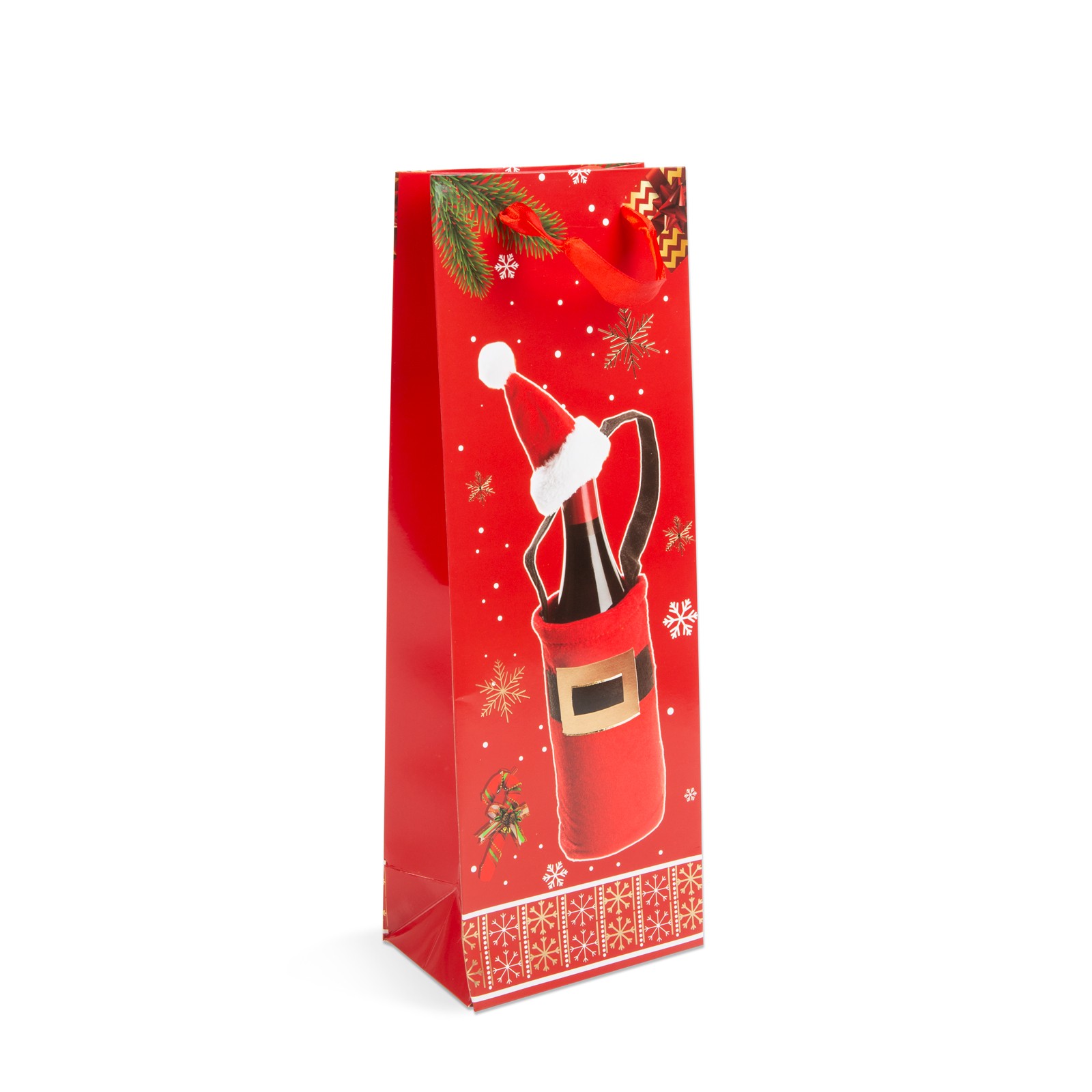 Wil je je cadeau stijlvol presenteren tijdens de kerstdagen? Dan is deze kerstdrankhouder de perfecte keuze. Hij is gemaakt van hoogwaardig, duurzaam papier en is dankzij zijn formaat ideaal voor het schenken van de meeste drankflessen. De gebruiksvriendelijke cadeauzak is praktisch en maakt het inpakken eenvoudiger. De decoratieve, feestelijke uitstraling van de kerstcadeauzak zal ongetwijfeld ieders hart veroveren en de feeststemming verhogen.