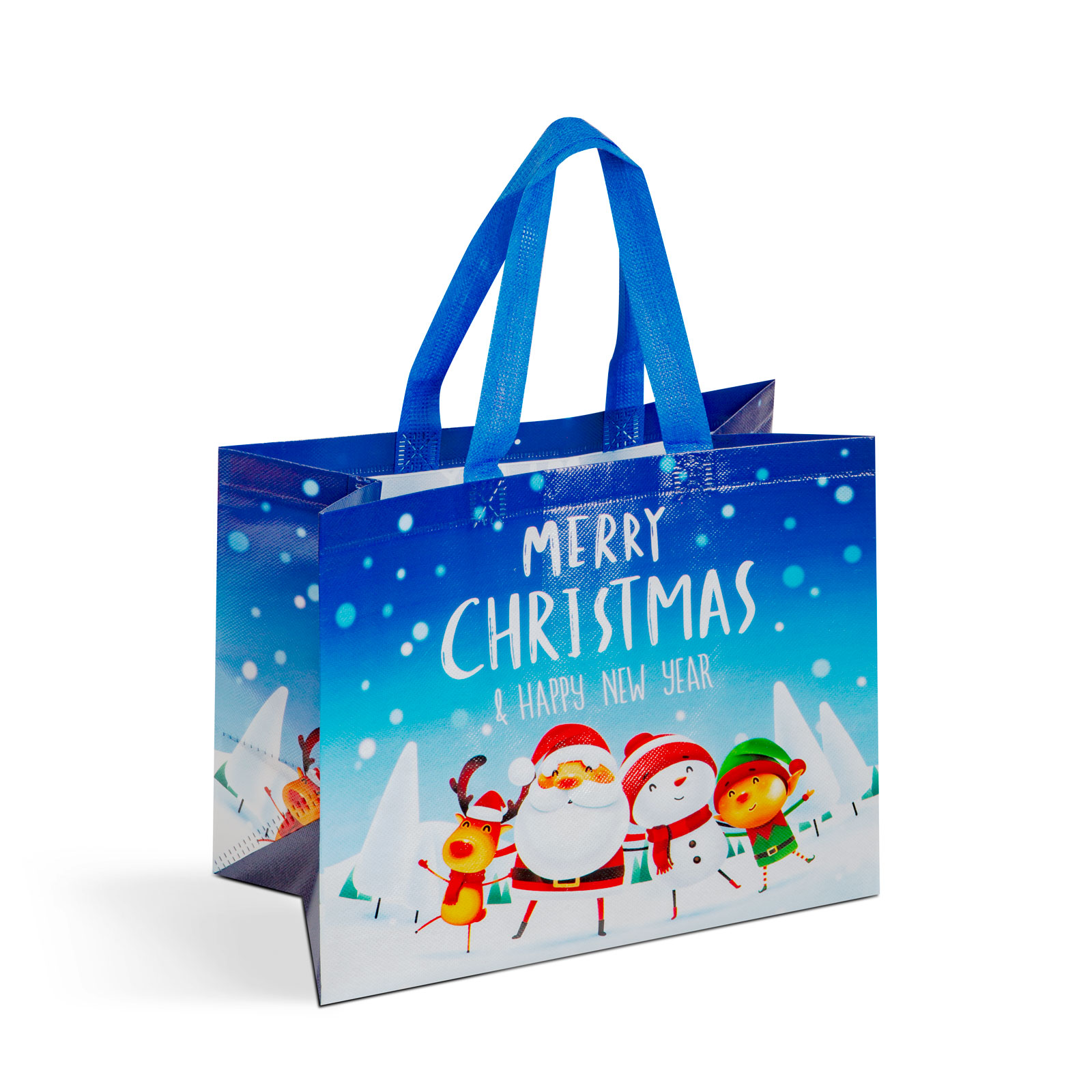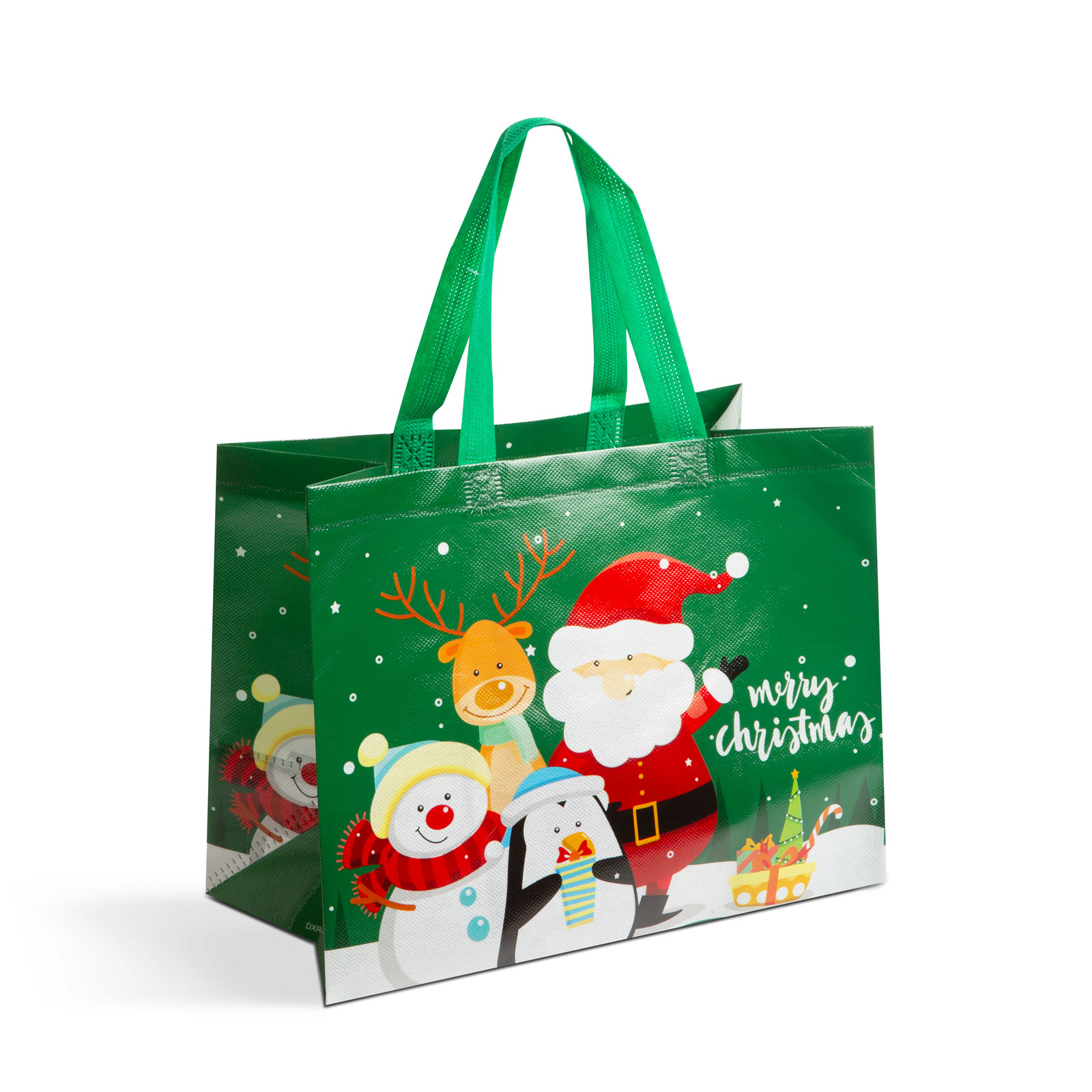 Wil je je vrienden en familie deze kerst een echt geweldig en stijlvol cadeau geven? Dan is deze kerstcadeautas de perfecte keuze om uit te delen! De non-woven tas met vrolijk design is versierd met 3 kerstmotieven. Gemaakt van duurzaam materiaal, is hij dankzij zijn formaat ideaal voor het bewaren en uitdelen van cadeaus en snoep. Dankzij het grote handvat is hij gemakkelijk en comfortabel mee te nemen.