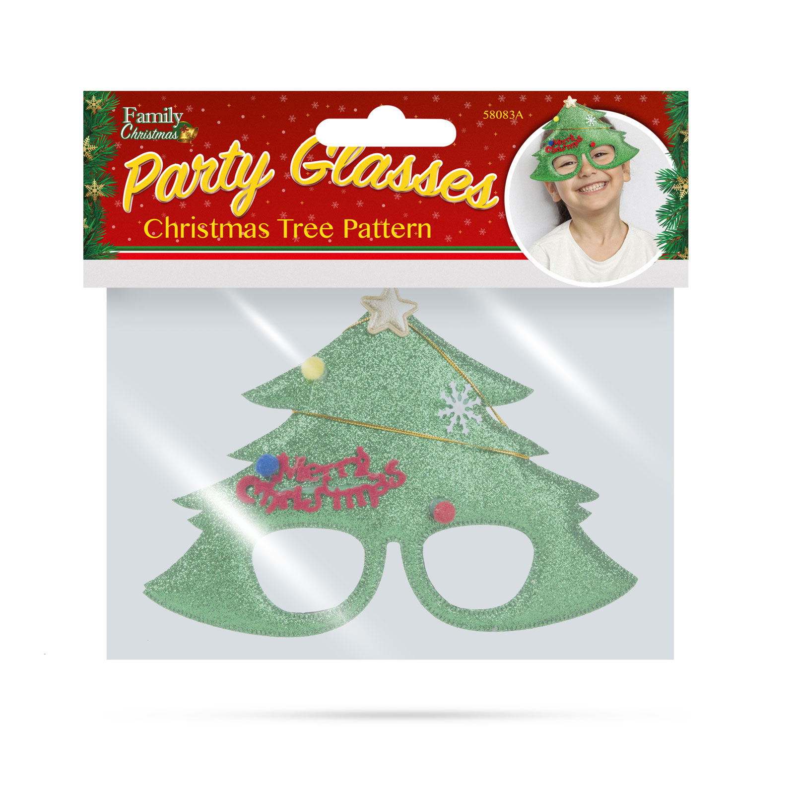 Maat: ~20 x 15 cm Materiaal: Kunststof, textiel Kleur van de bril: Zwart Kleur van de kerstboom: Groente Gewicht: ~20 gram