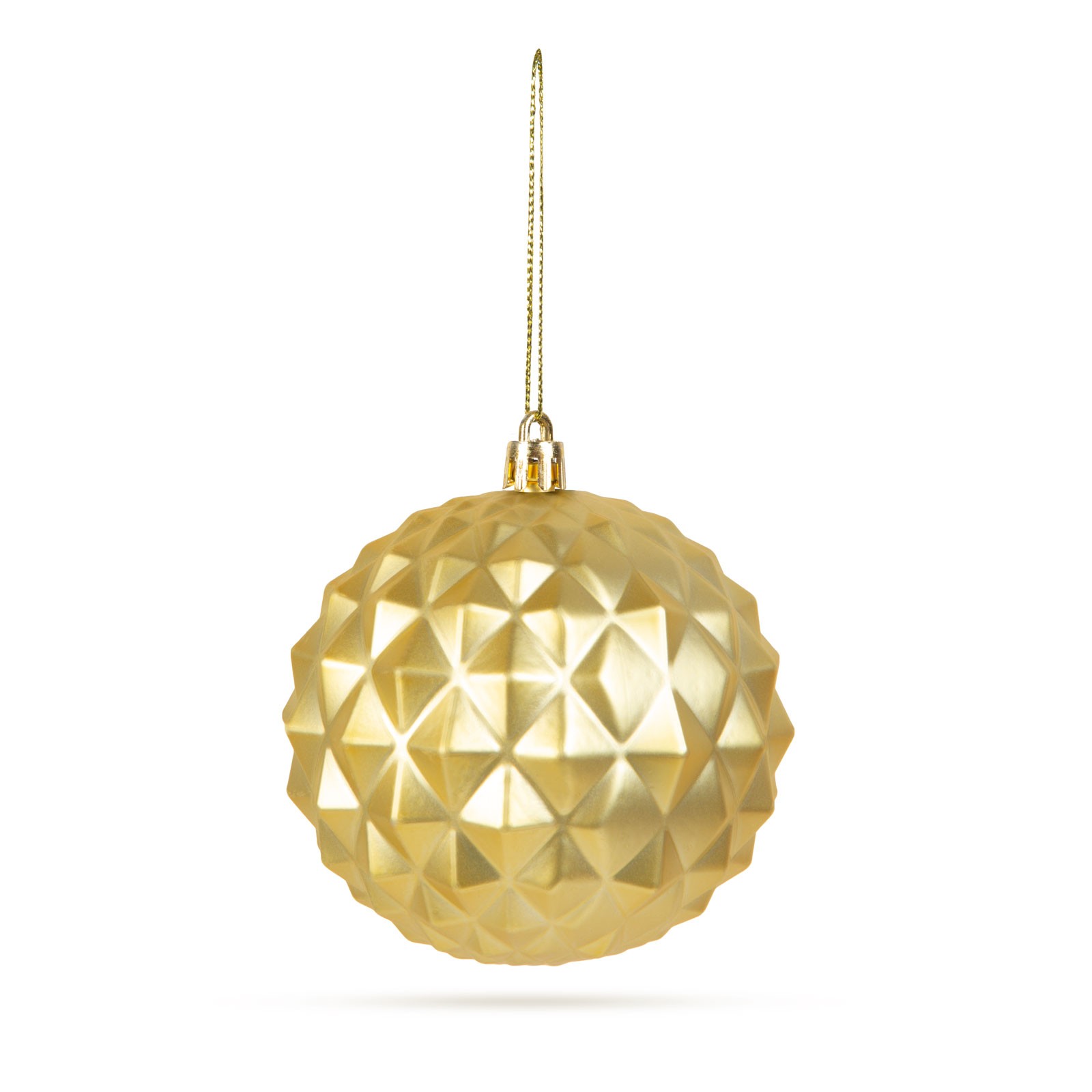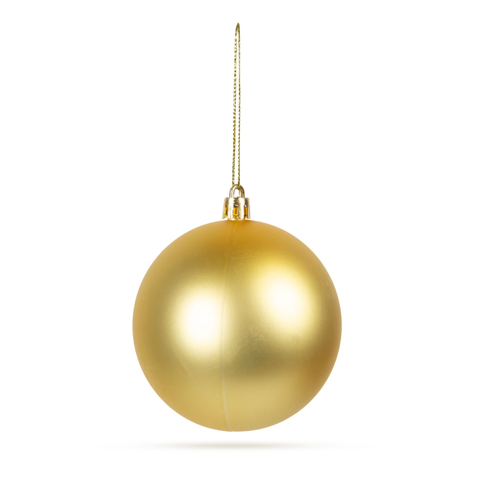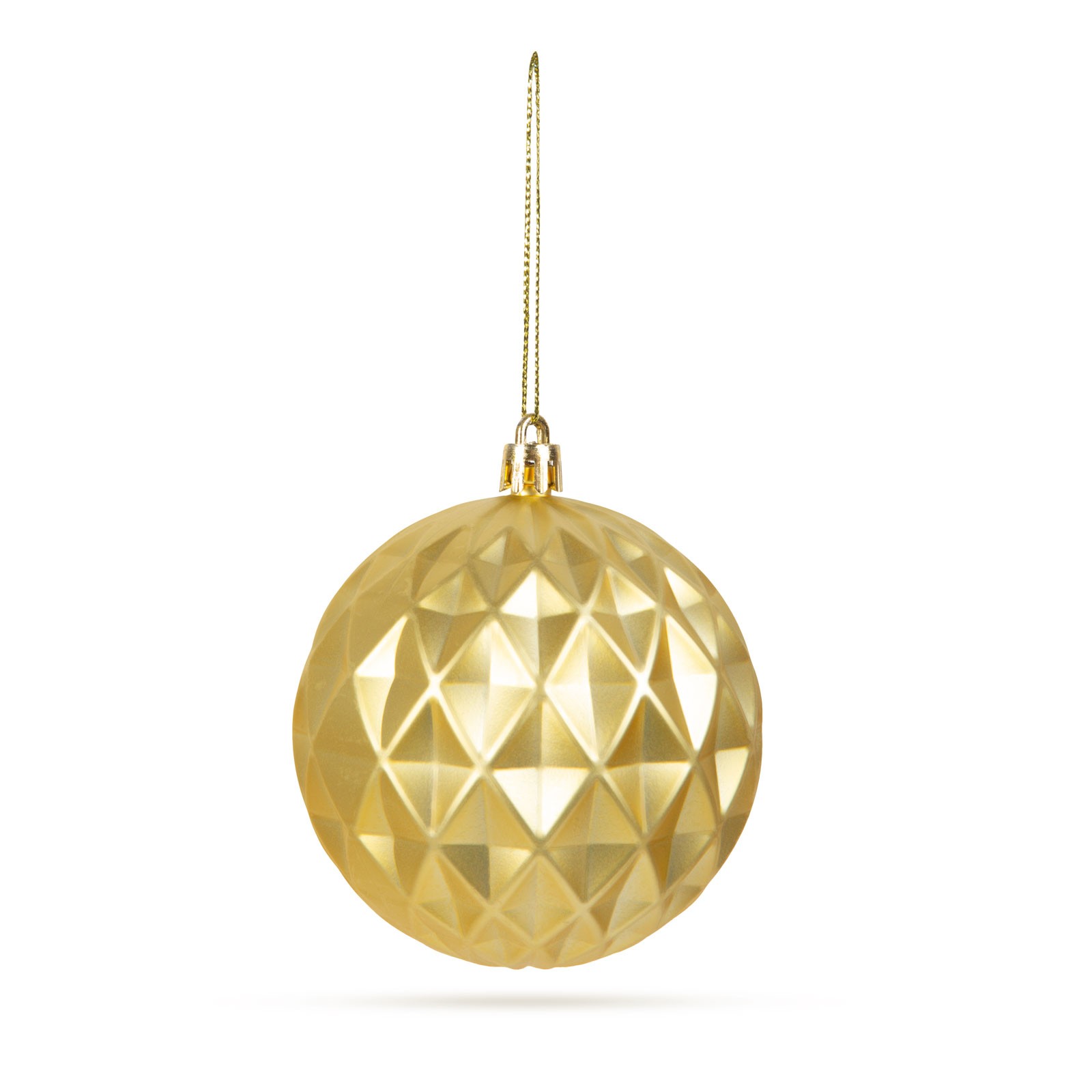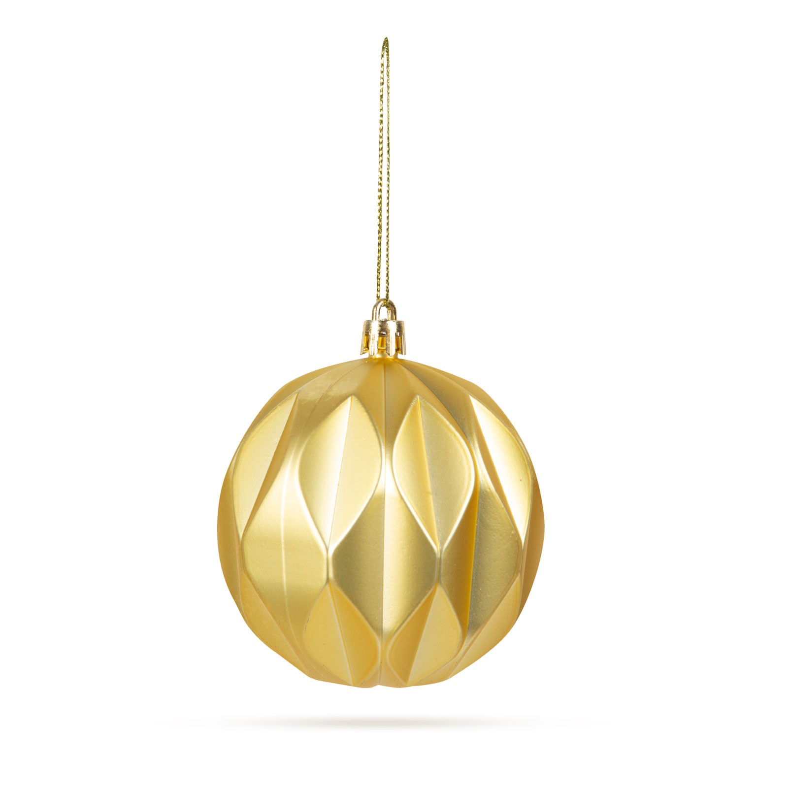 Diameter van de bol: Ø73 mm Kleur: Goud Lengte hanger: 60 mm Inhoud van het pakket: 6 stuks ornament Gewicht: ~15 g / ornament