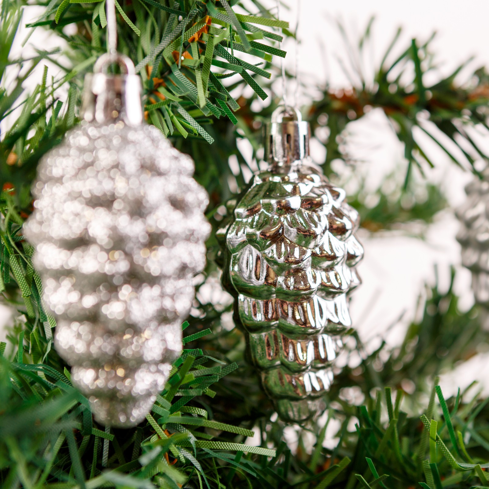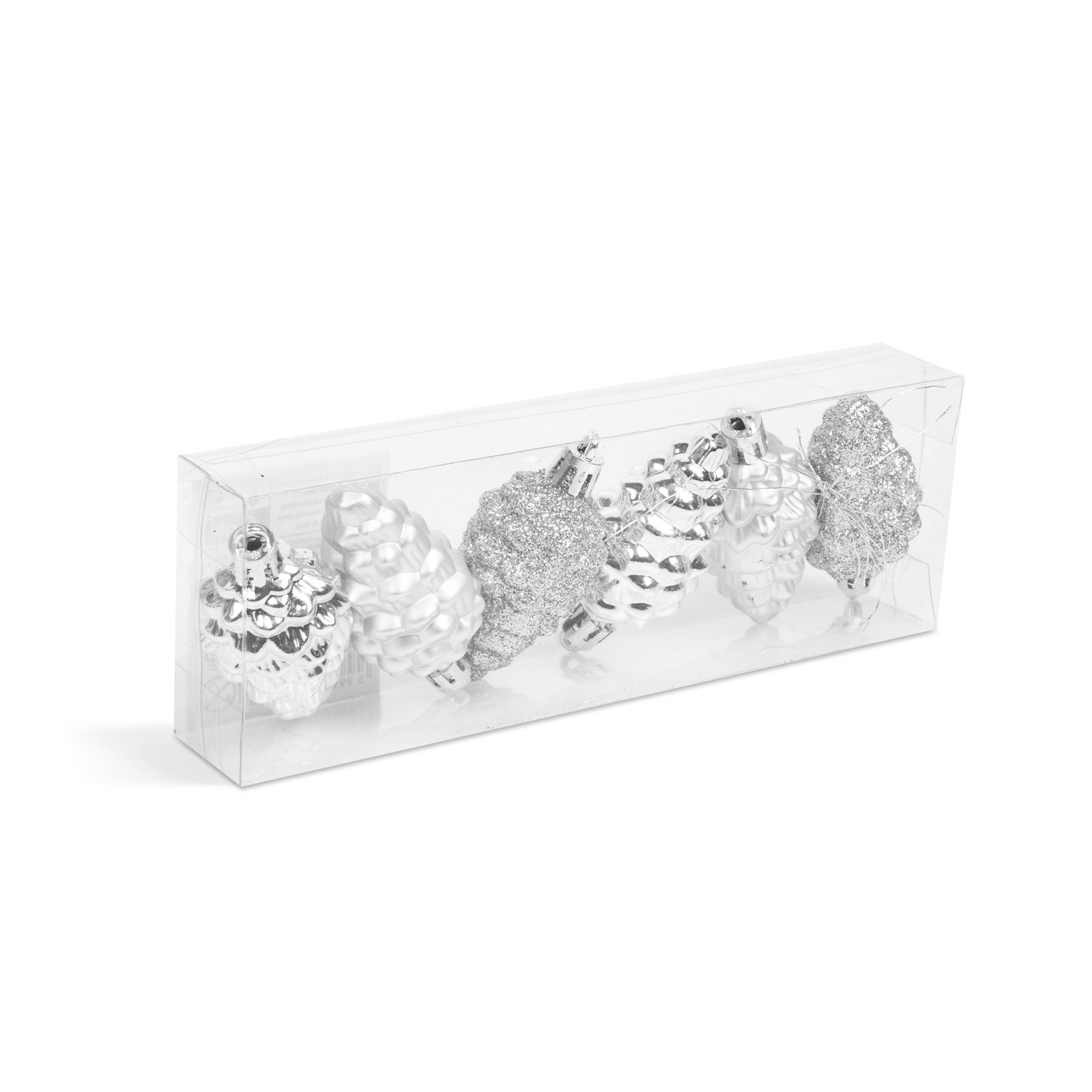 Afbeelding van Kerstdecoratieset - 6 zilveren dennenappelornamenten (6 cm) - glanzend, mat & glitter - kunststof