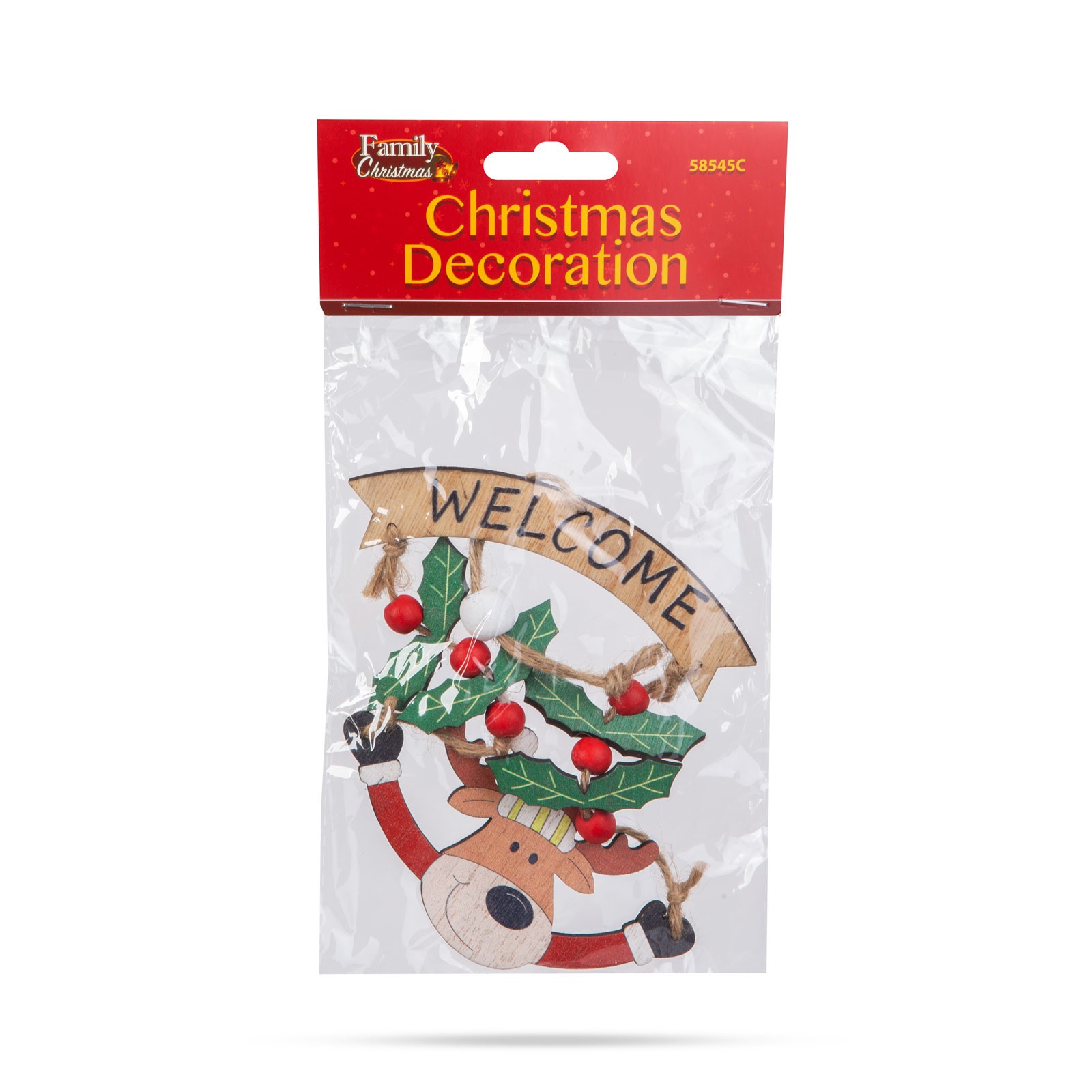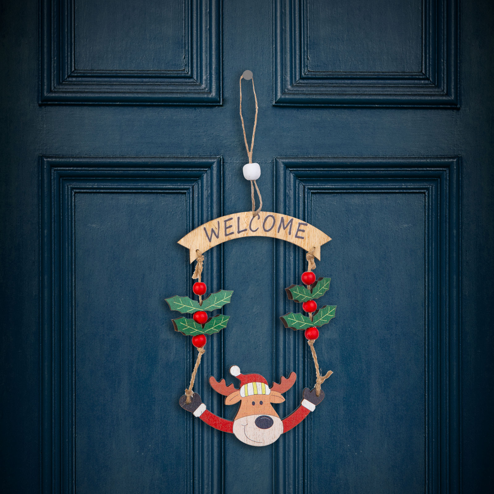 Dit prachtige houten rendierfiguurtje is een perfecte aanvulling op de kerstversiering in huis. Het beeldje is een prachtig vervaardigd rendierfiguurtje, versierd met bessen en een welkomstlabel voor een vrolijke en vrolijke sfeer. Houten ornamenten geven warmte en een natuurlijke uitstraling aan elke feestelijke decoratie. De gedetailleerde, gedetailleerde beschildering zorgt voor een minutieuze en opvallende uitstraling. Het beeldje is gemaakt van een stevig maar licht stuk hout dat overal in huis kan worden opgehangen.