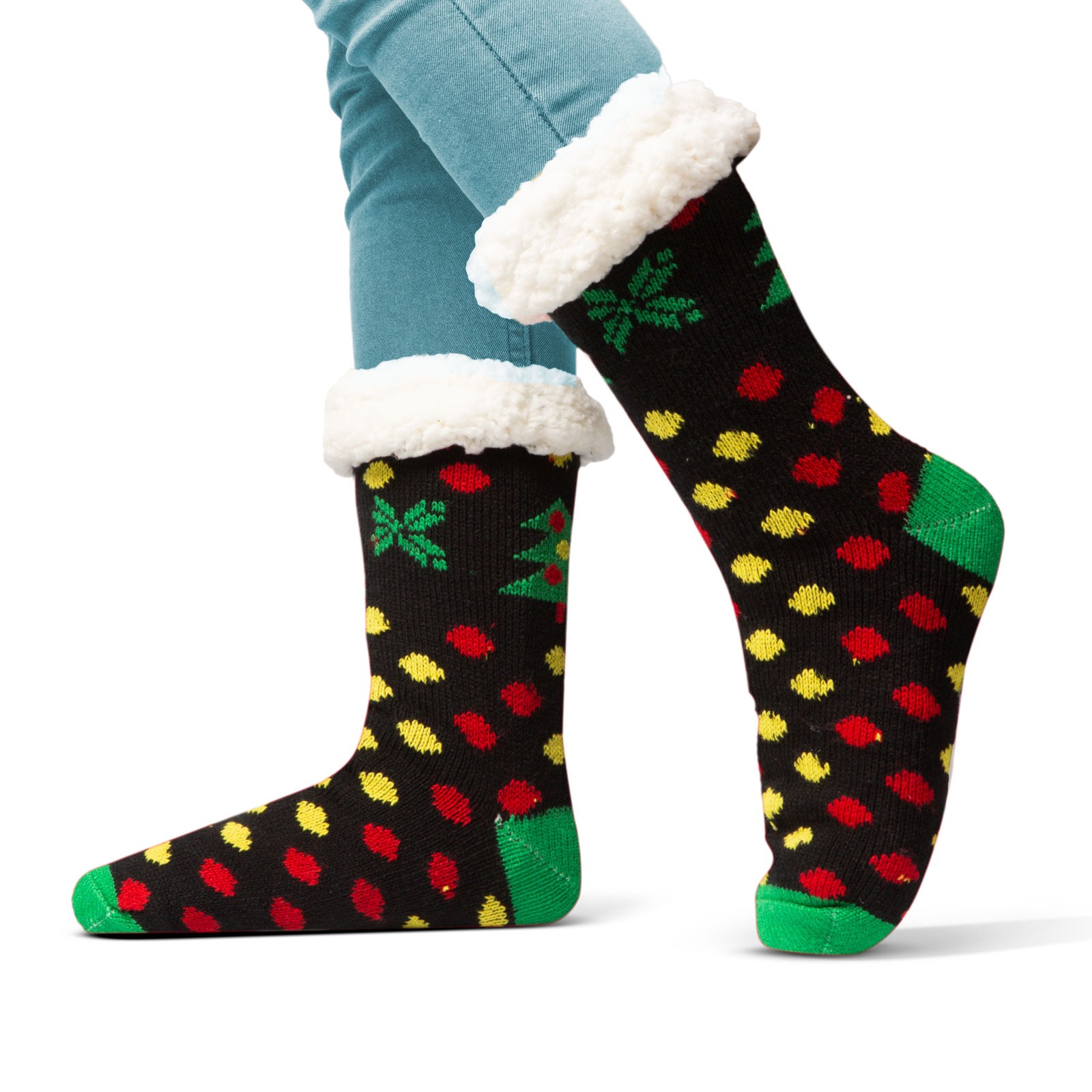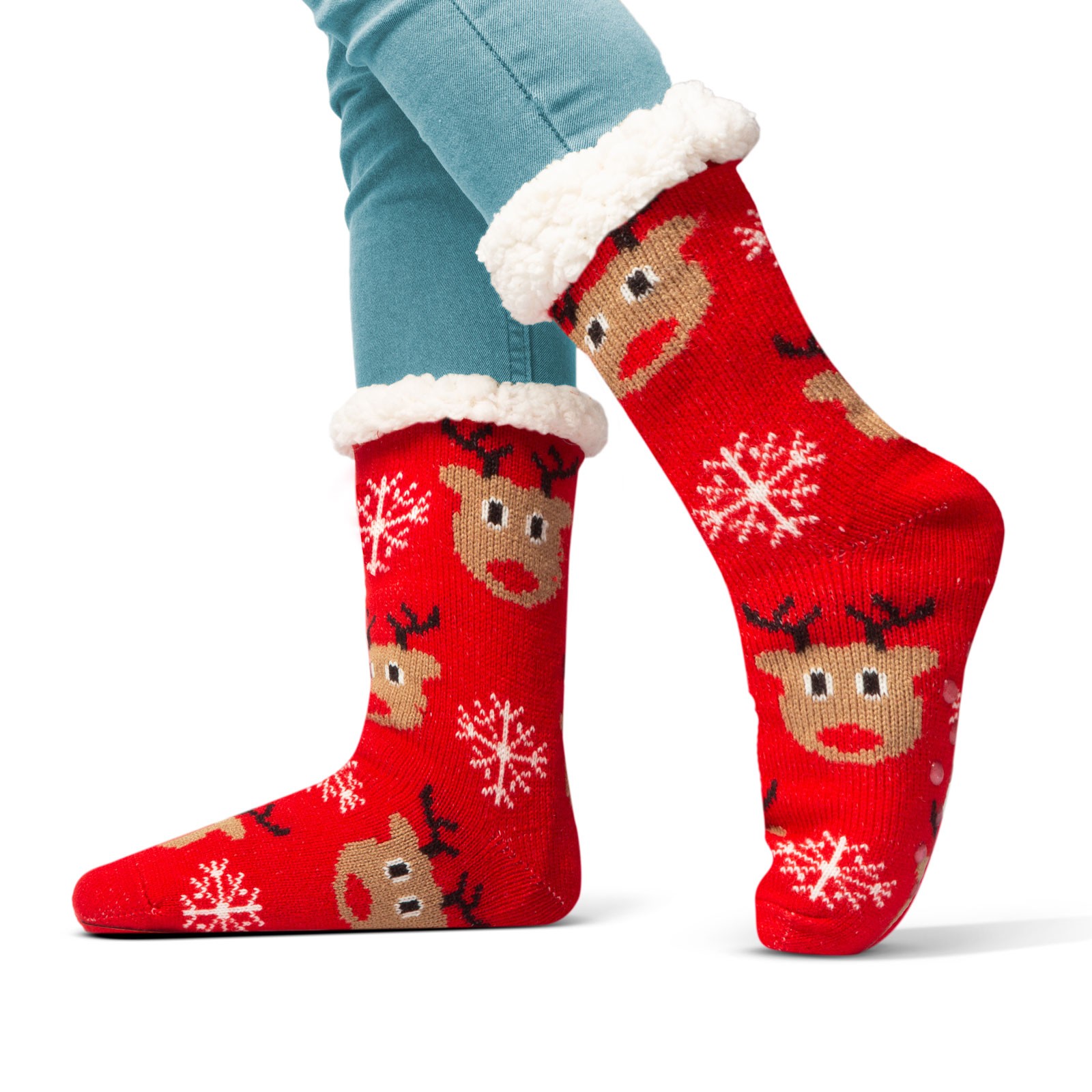 Speciale thermosokken met antislipnoppen op de zool. Als jij of een van je familieleden het koud heeft, is dit het perfecte kerstcadeau! Dankzij de pluizig zachte voering zijn ze zelfs op de koudste dagen lekker warm. De hit van het seizoen met het prachtige kerstpatroon!