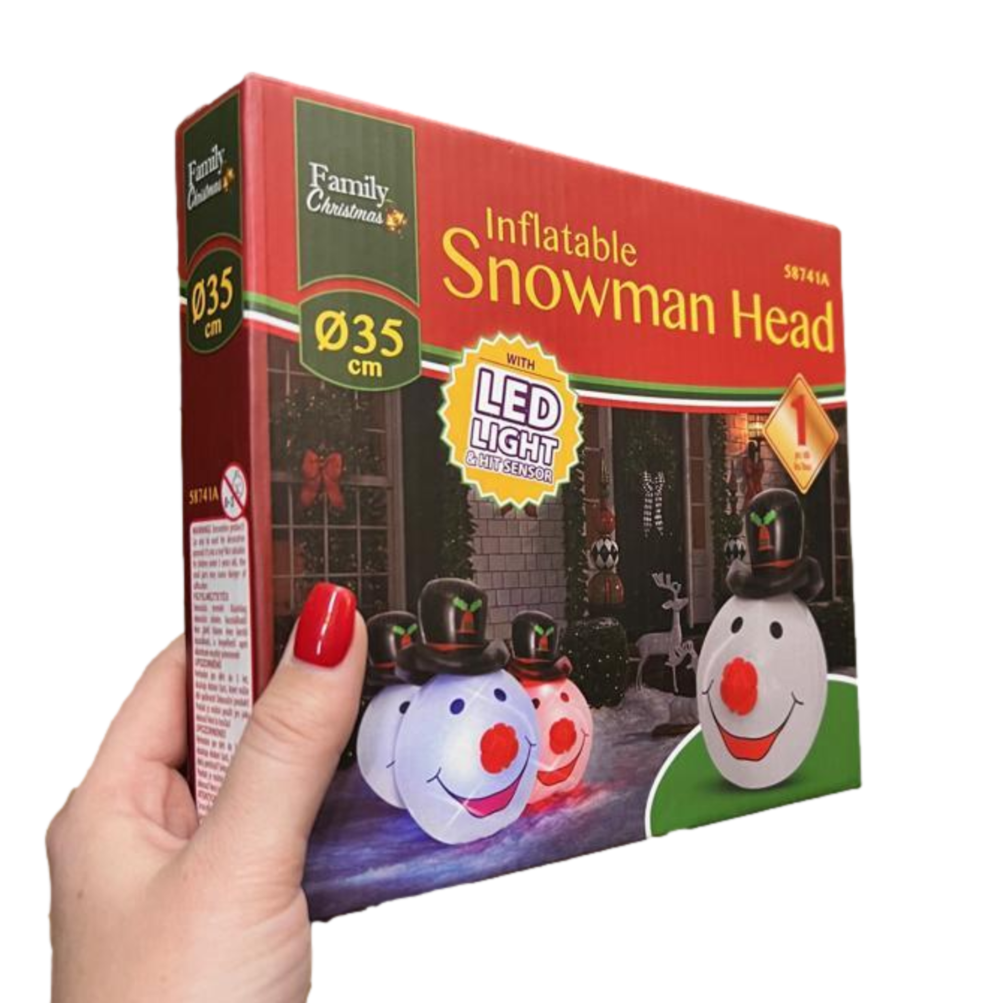 Kerstverlichting Buiten op Batterijen – Reuze Sneeuwpop Kop Verlicht +-50cm – Verlicht bij botsing 15 seconden!