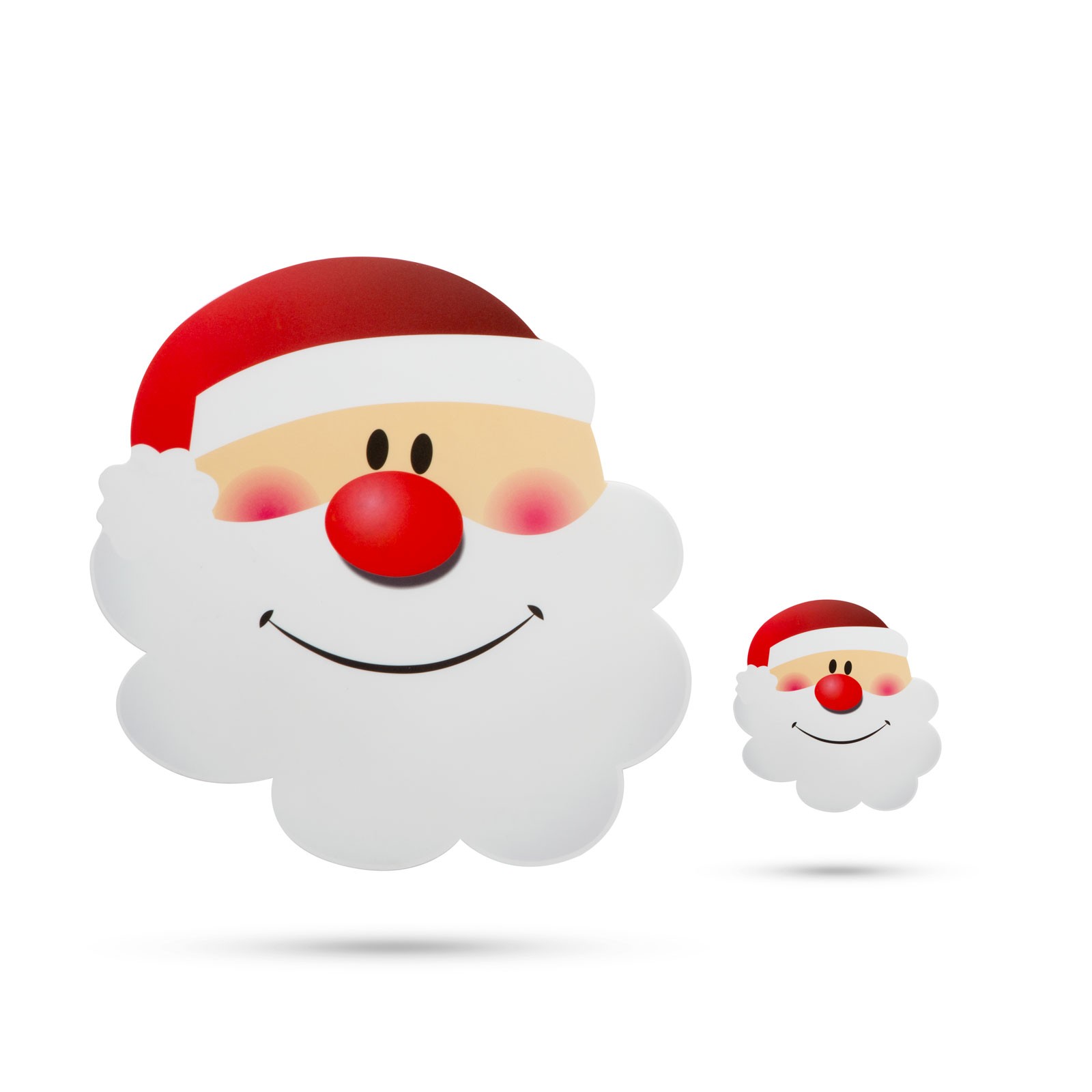 Kerstplacemat en onderzetter met kerstmanmotief. De set bestaat uit 4 placemats en 4 onderzetters met een lachende kerstman.
