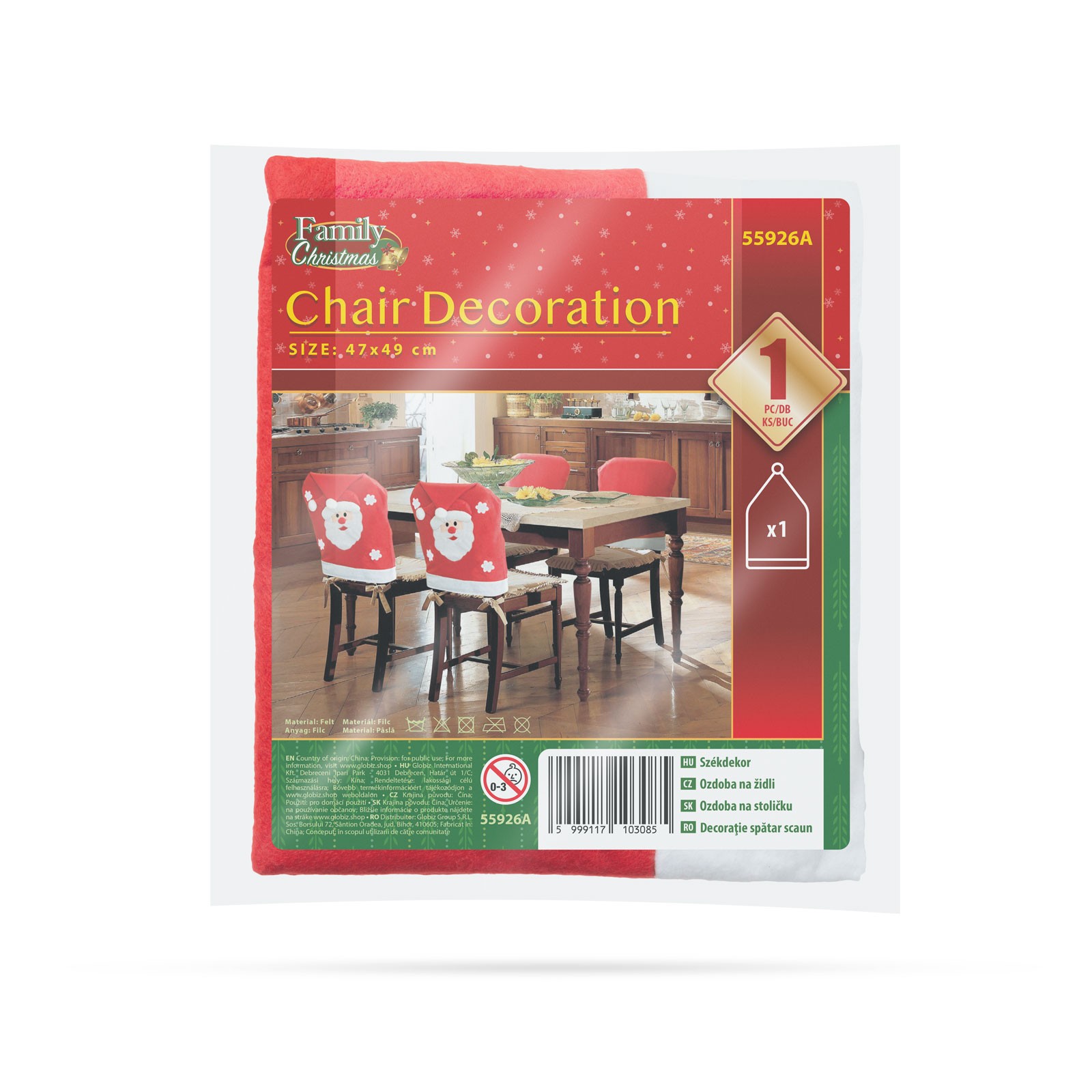 Kerststoelhoes Kerstversiering met reliëf – kerstmanmotief – feestelijke stoeldecoratie 47×49 cm 1 stuks [55926A]