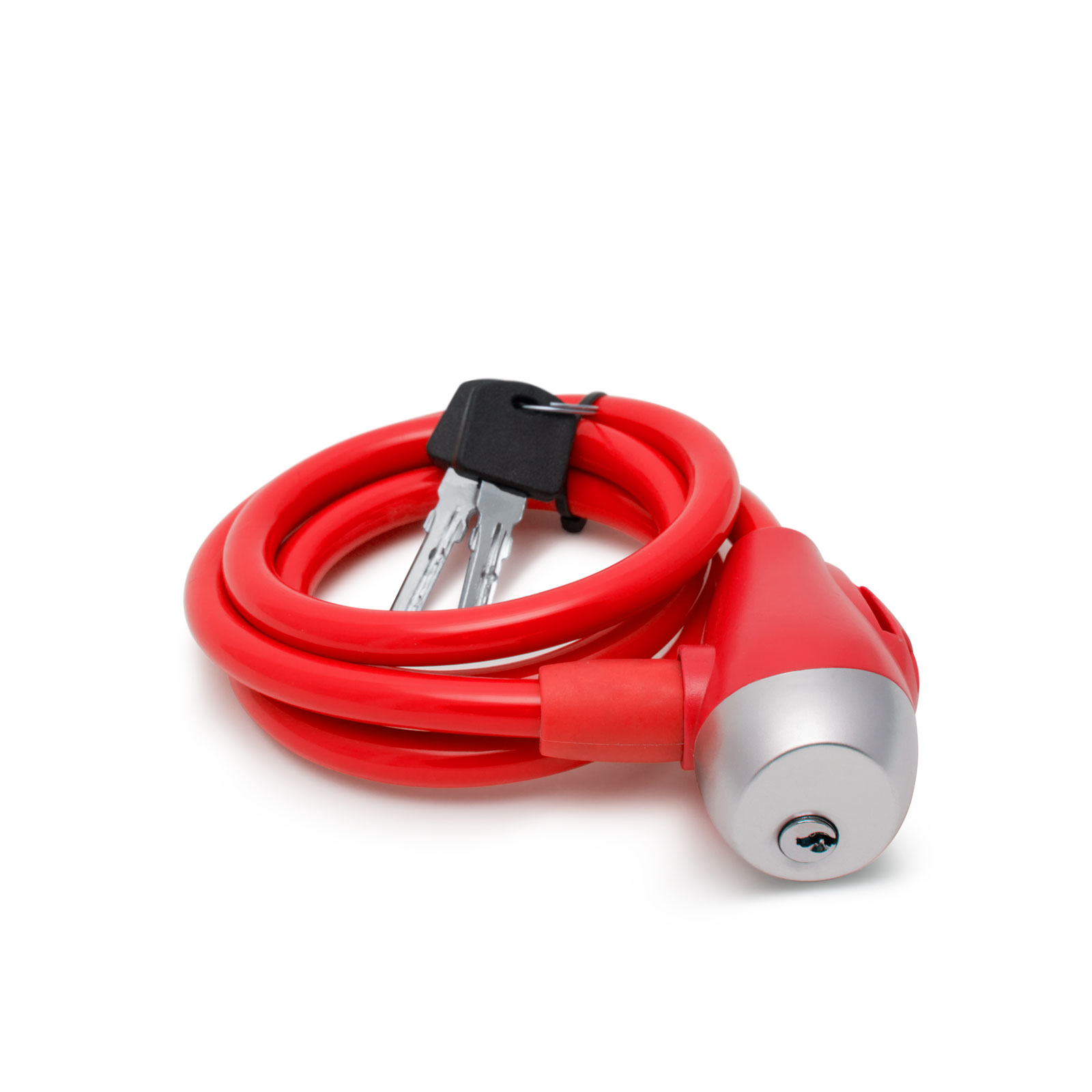 Kabelslot voor mensen die meer veiligheid nodig hebben dan alleen een gewoon fietsslot. De staalkabel met plastic omhulsel is beter bestand tegen iemand die de kabel probeert door te knippen.