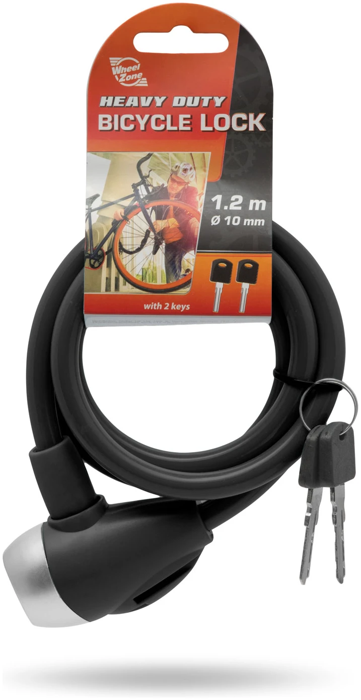 Kabelslot voor mensen die meer veiligheid nodig hebben dan alleen een gewoon fietsslot. De staalkabel met plastic omhulsel is beter bestand tegen iemand die de kabel probeert door te knippen.