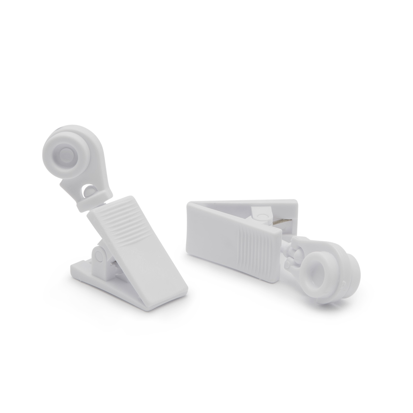 Decoratieve kunststof clips voor gordijnen. De witte metalen clip zorgt voor een harmonieuze witte kleur. Past goed bij een witte gordijnroede of een wit gordijn. Ook met een loper.