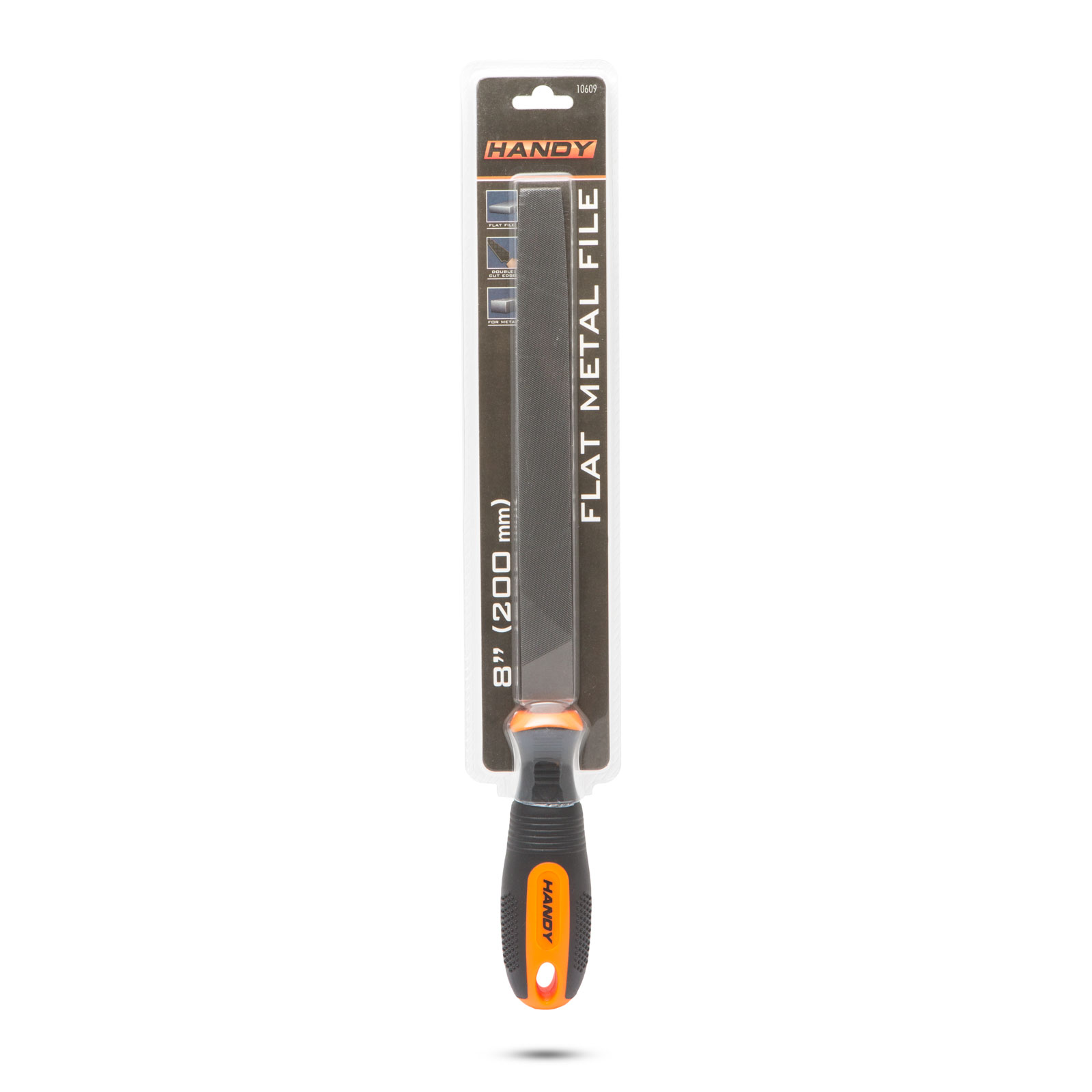 Hoogwaardige, 200 mm lange vijl met rubberen handgreep. Plat, gehard, met tweede snijkanten, perfect voor houten materialen en metalen. De ergonomische rubberen handgreep zorgt voor comfortabel en veilig gebruik tijdens het vijlen. De perfecte keuze voor het vijlen van scherpe randen en snijkanten.