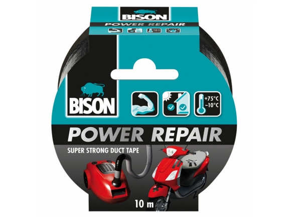 Bison – Power Repair Duct Tape – Super Sterk – Verstevigd materiaal – Zwart – 10 meter – Hittebestendig / voor Binnen & Buiten