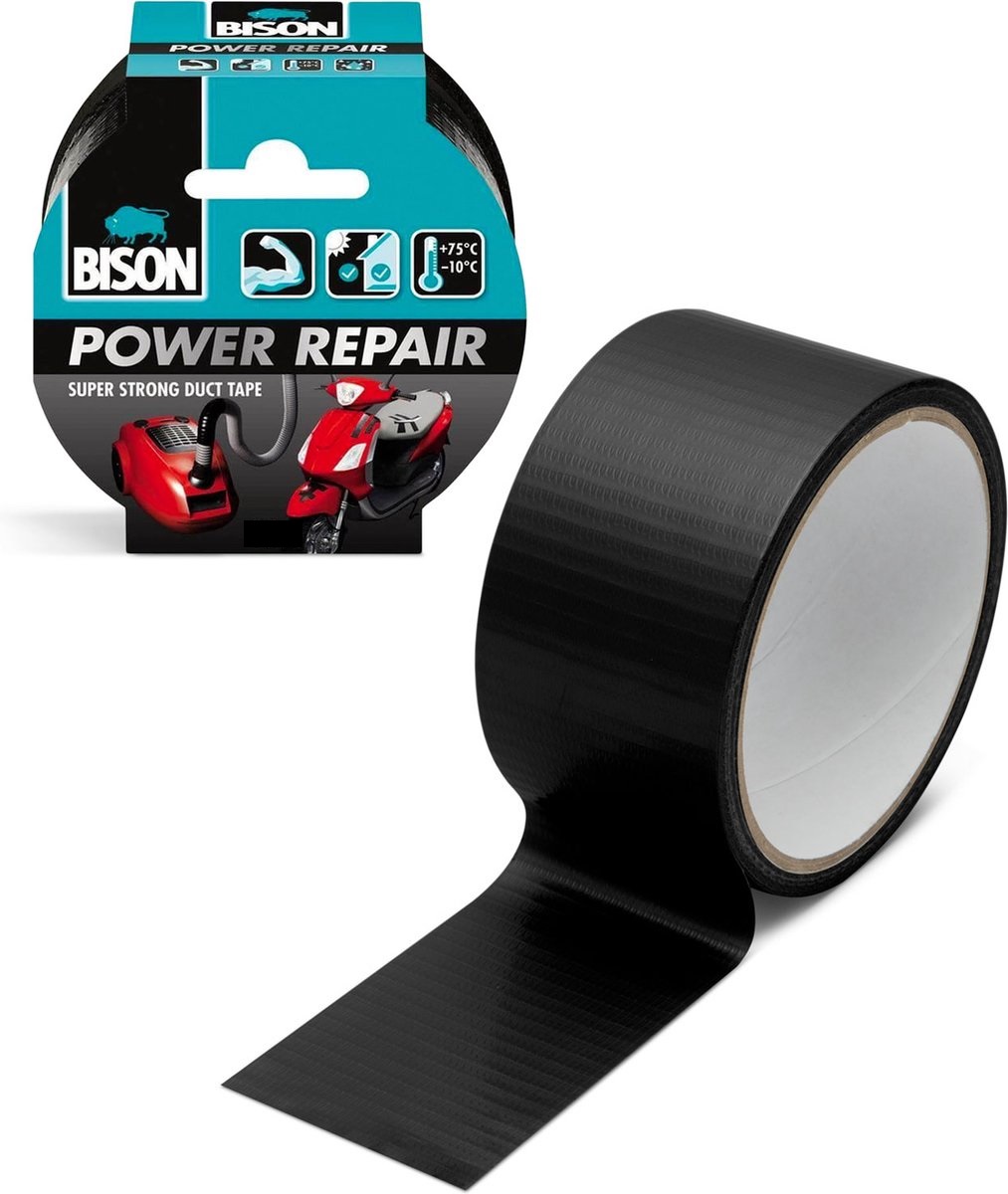 Afbeelding van Bison - Power Repair Duct Tape - Super Sterk - Verstevigd materiaal - Zwart - 10 meter - Hittebestendig /