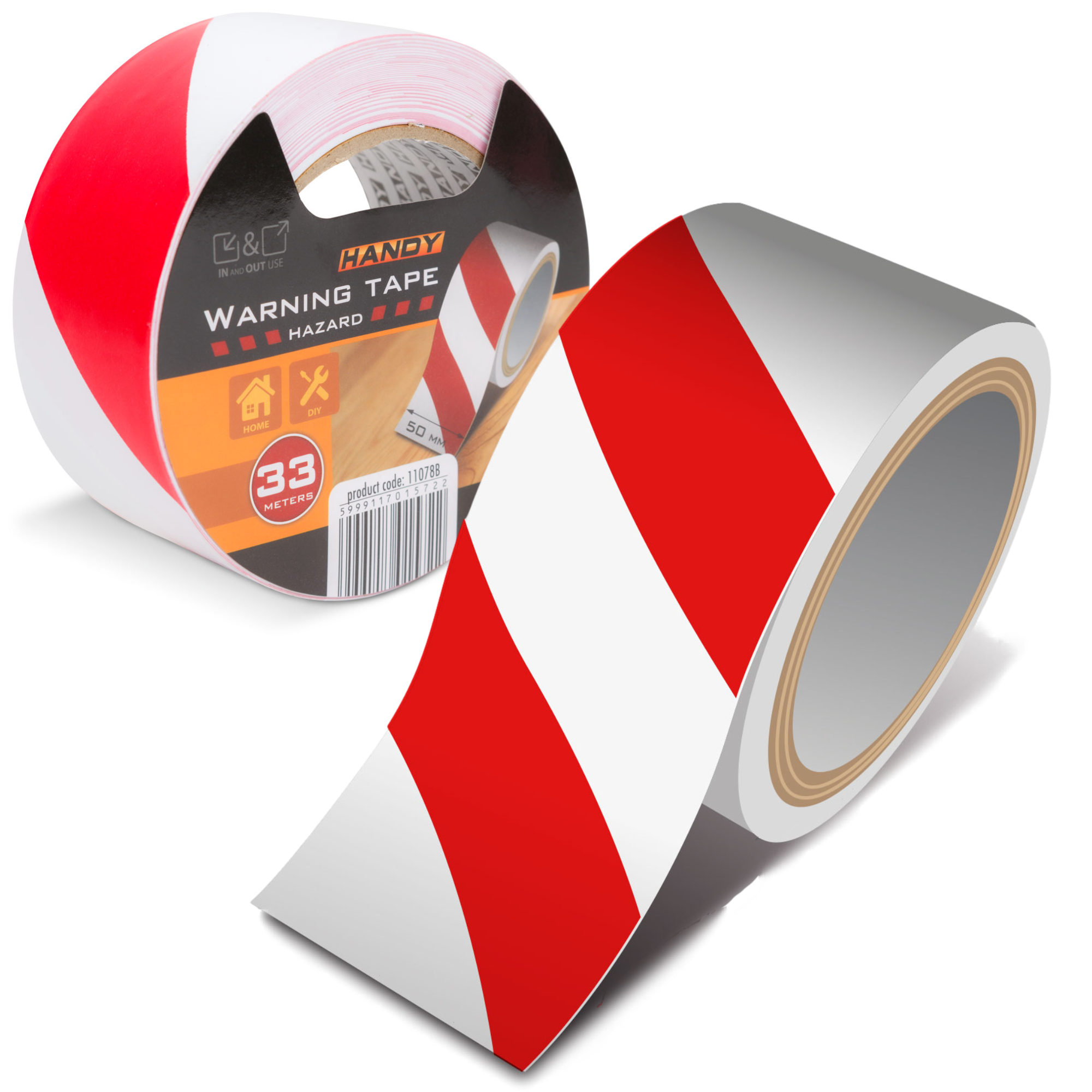 Waarschuwingstape van het bekende merk HANDY met een glad oppervlak. Deze PVC tape heeft een extreem goede kleefkwaliteit, kan zowel binnen als buiten worden gebruikt dankzij zijn weerbestendige eigenschappen. Het kan ideaal zijn voor het veiliger maken van trappen, drempels, hellingen of zelfs objecten afbakenen. Door de Wit met Rode kleurstelling kan het gebruikt worden om objecten af te bakenen.