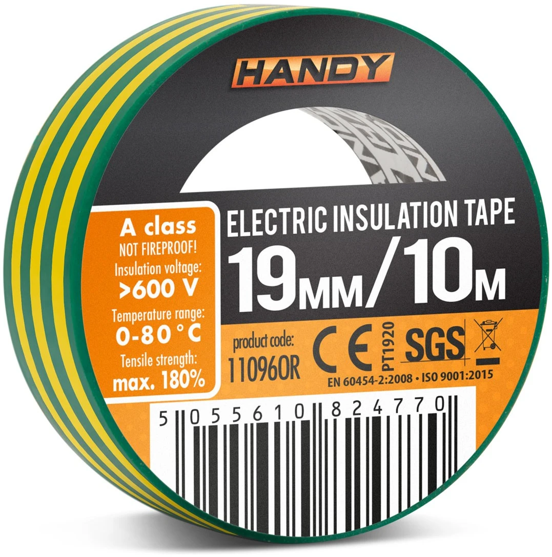 10× Isolatietape Groen/Geel 10 m × 19 mm – Set Van 10 Rollen – PVC Elektrische Tape Voor Kabelisolatie En Bescherming – Tot >600 V – Voor Installatie En Reparatie [11096X]