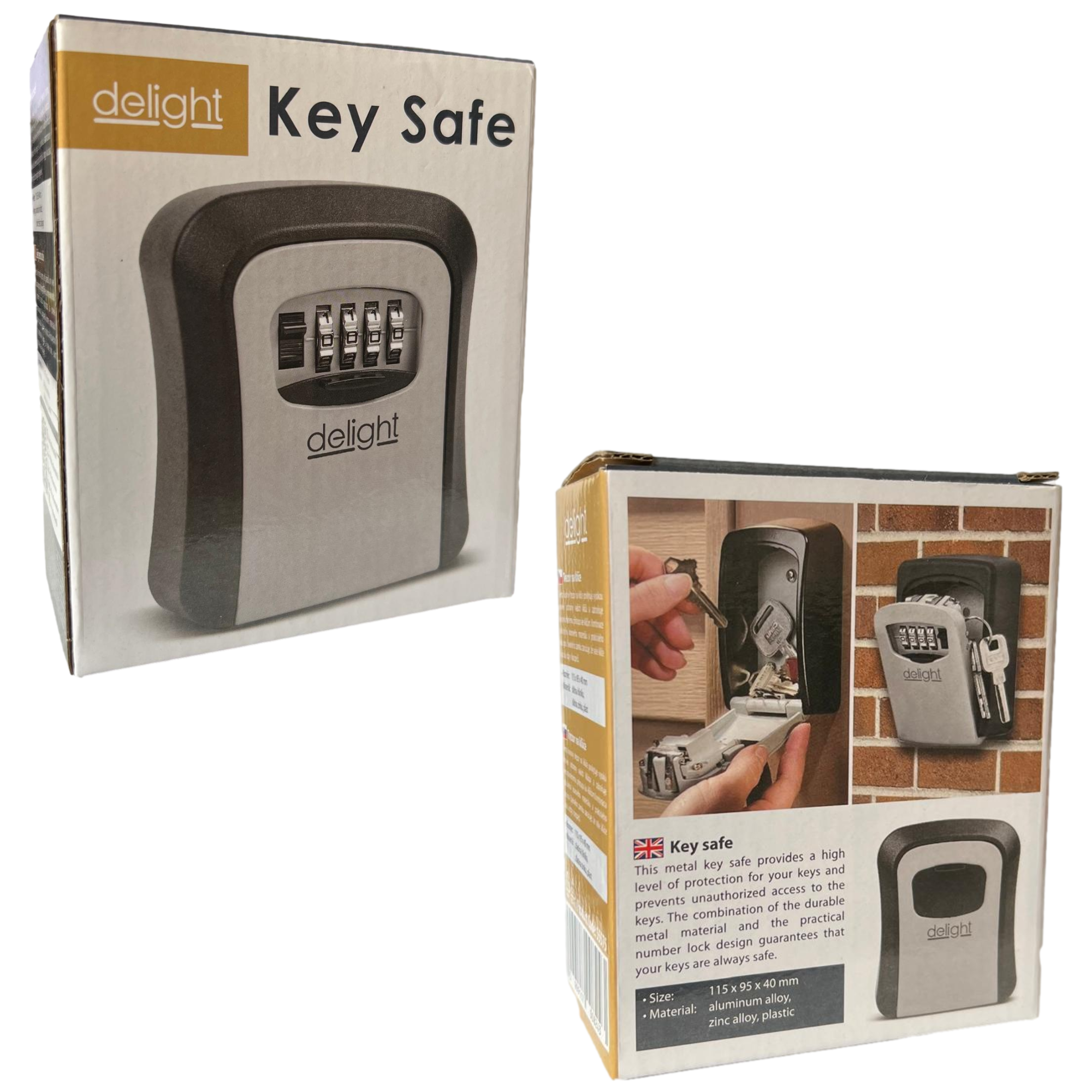 Met een afmeting van 115 x 95 x 40 mm biedt deze kluis voldoende ruimte om meerdere sleutels veilig op te bergen. Of het nu gaat om huissleutels, autosleutels of sleutels voor een bedrijfspand, met de Delight Sleutelkluis hoef je je geen zorgen meer te maken over het verliezen van je kostbare sleutels.