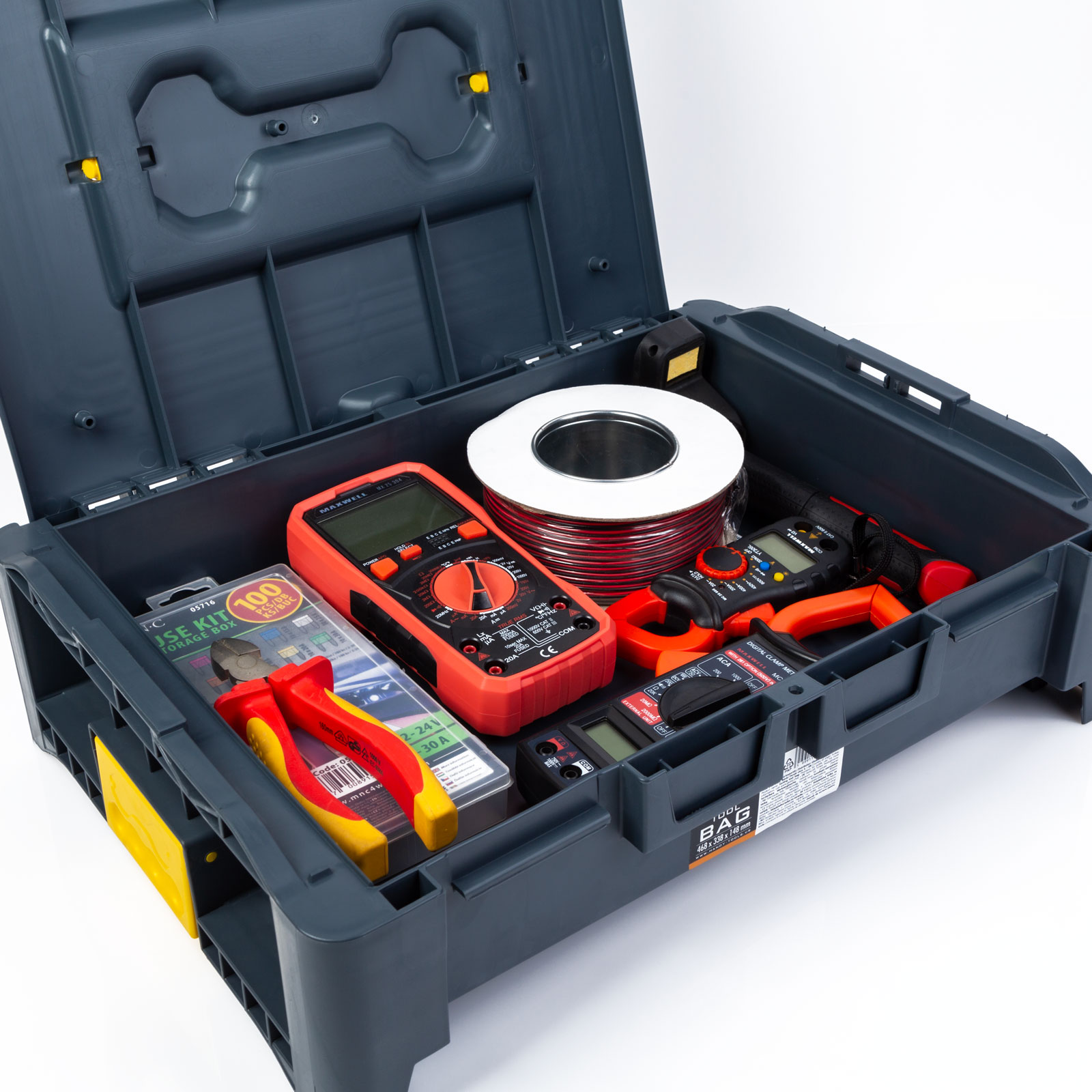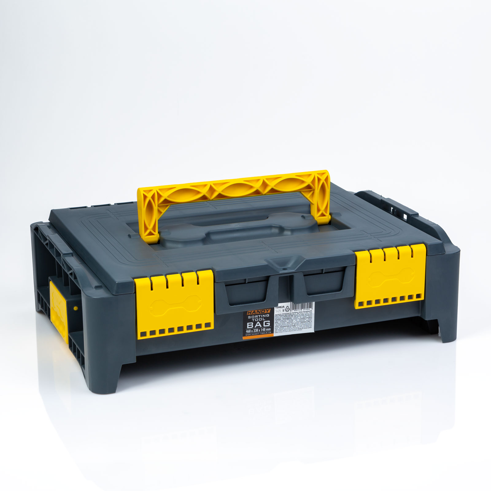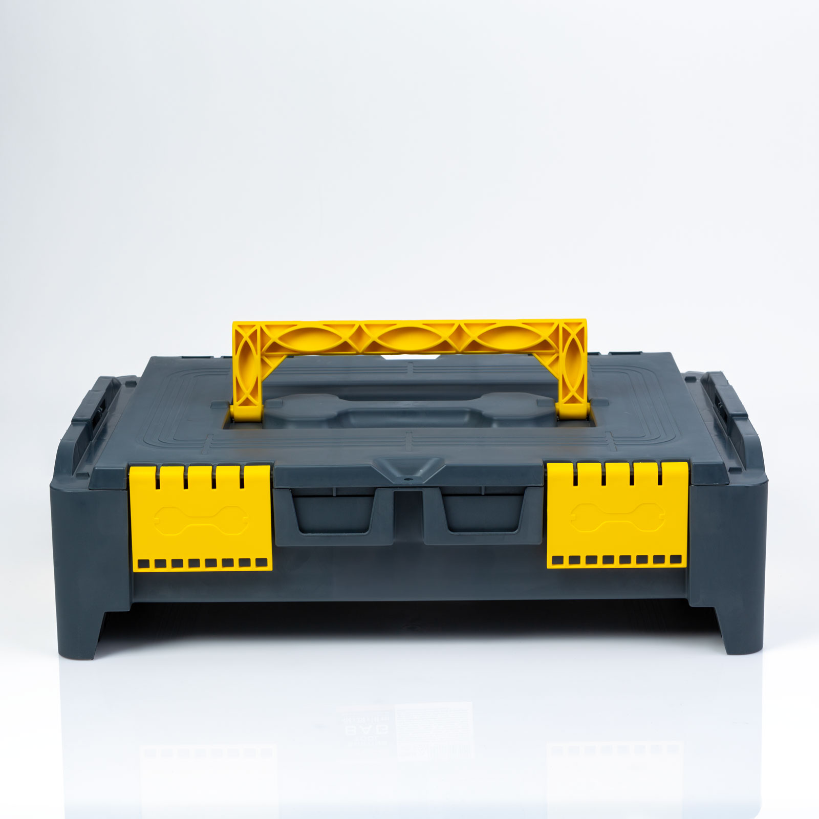 Het middelste lid van een innovatieve familie van onderling verbonden gereedschapstassen. De tassen uit de serie zijn verkrijgbaar in verschillende maten en kunnen eenvoudig met elkaar worden verbonden, zelfs met een rolplateau. Ze kunnen in elke gewenste volgorde en grootte worden gecombineerd en hebben een grote inhoud.