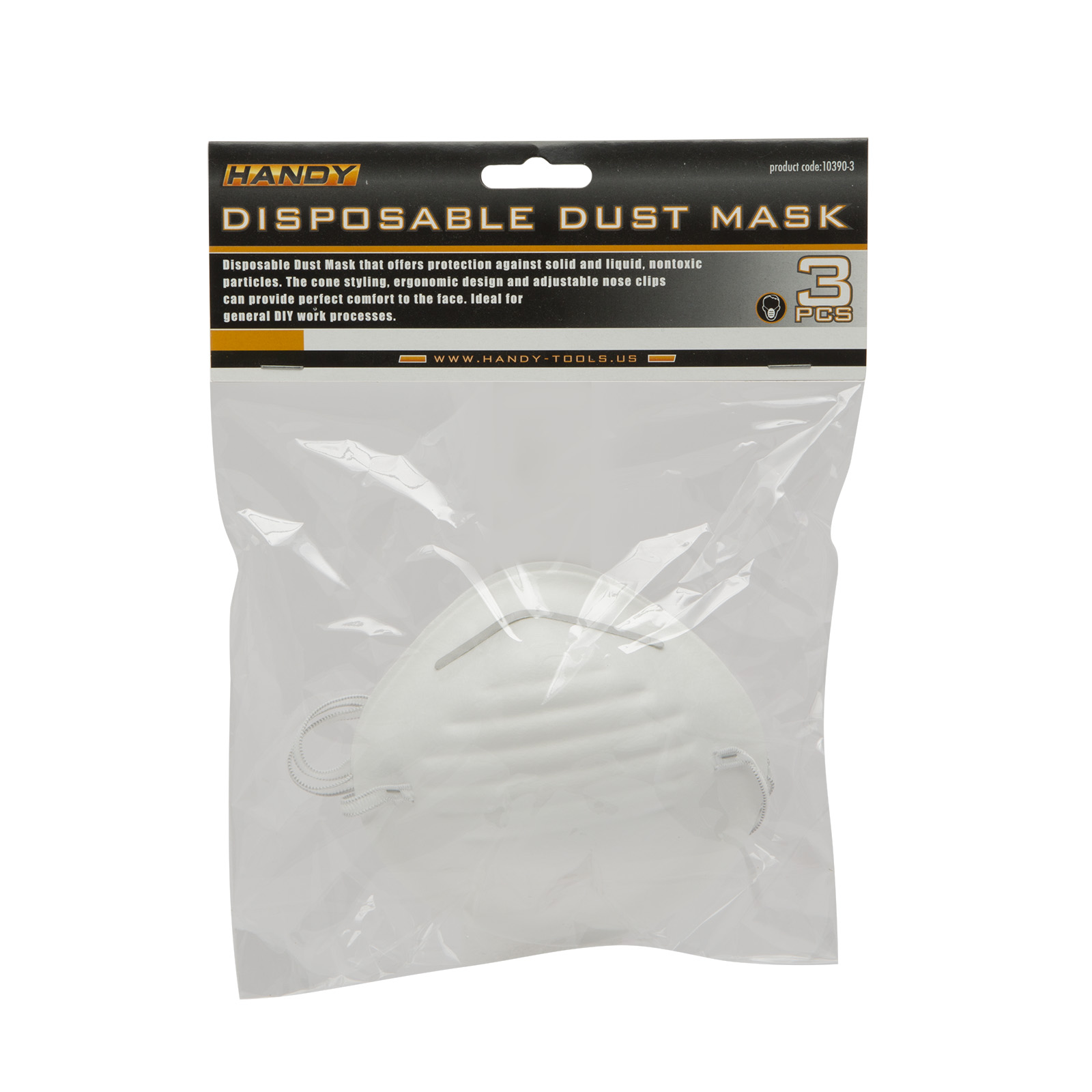 Wegwerpstofmasker dat bescherming biedt tegen vaste en vloeibare, niet-giftige deeltjes. Conische vorm, neusklem, comfortabele pasvorm. Ideaal voor algemene doe-het-zelfwerkzaamheden.