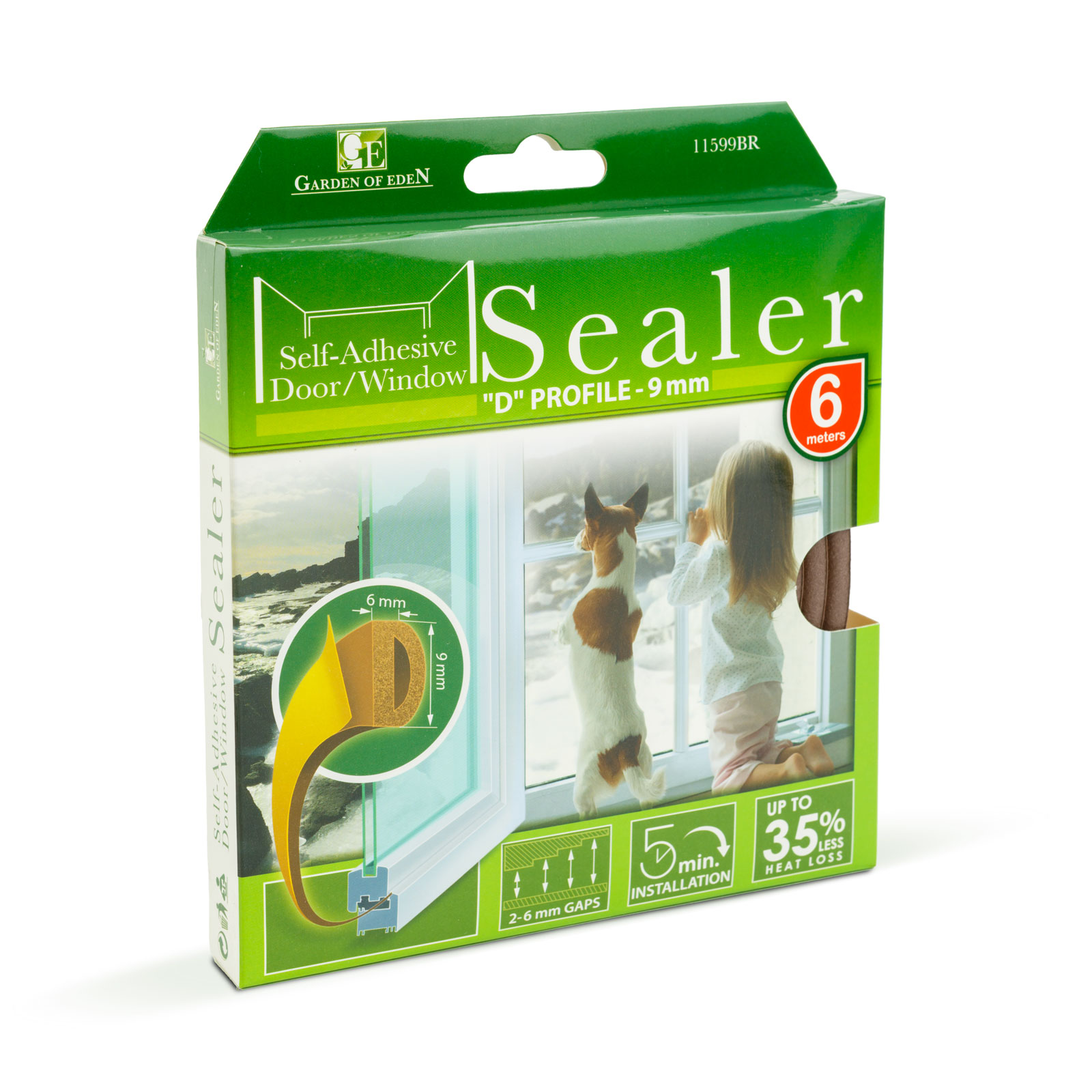 Profiel: “D” Breedte: 9 mm Dikte: 6 mm Lengte: 6 m (2 x 3 m) Afdichtingsvermogen: 2 – 6 mm Kleur: Bruin Materiaal: Rubber – EPDM Gewicht: 105 gram Hittebestendig: -50°C – +60°C Gemiddelde levensduur: 8 jaar
