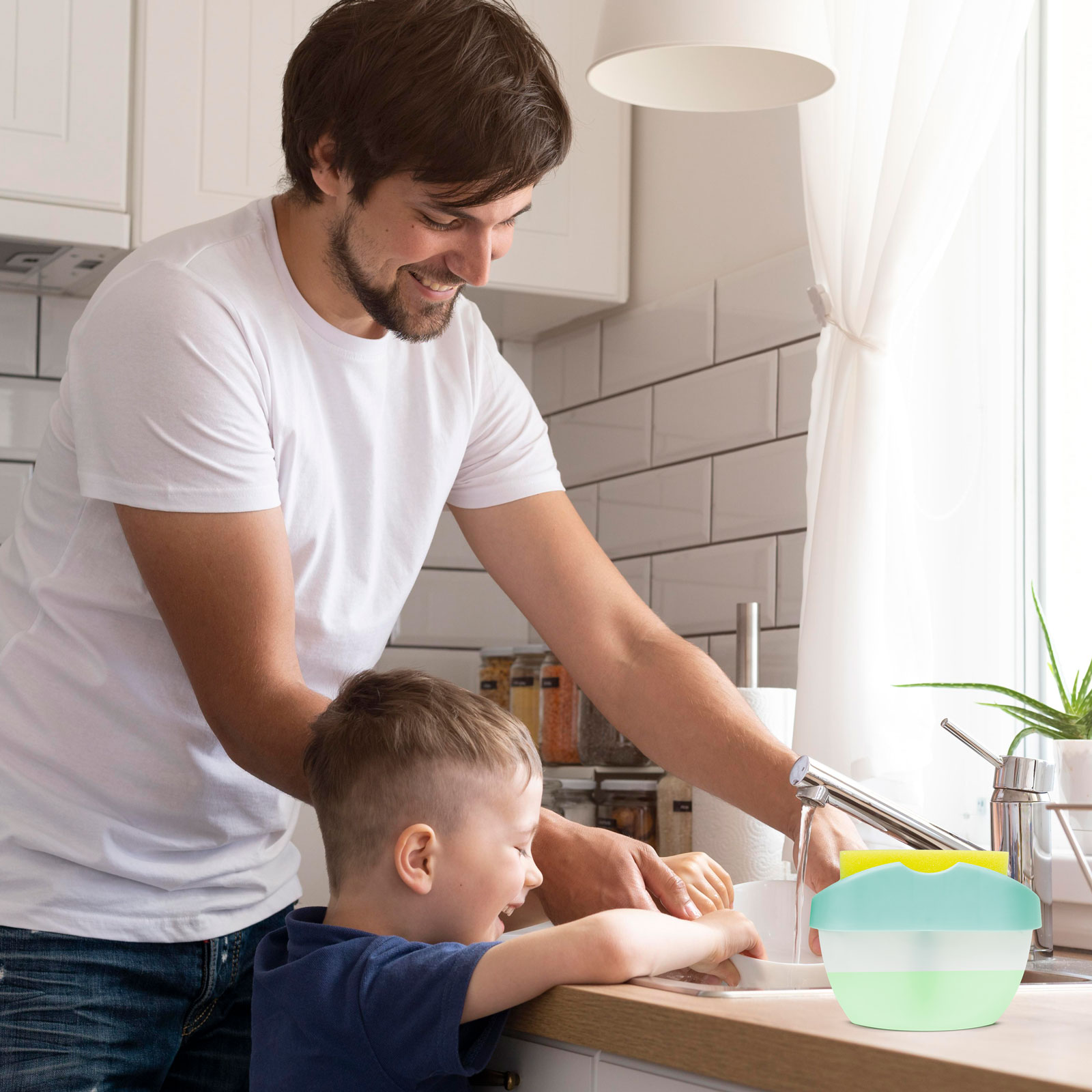 Een praktisch huishoudelijk apparaat dat het toevoegen en gebruiken van wasmiddel vergemakkelijkt. Vul het reservoir met wasmiddel, plaats de spons erop en druk naar beneden om het wasmiddel te pompen. Tijdens het pompen wordt alleen de benodigde hoeveelheid in de spons gepompt. Door het ontwerp van de bovenkant van het reservoir is het ook geschikt als sponshouder, zodat eventueel reinigingsmiddel terug in het opvangreservoir kan.