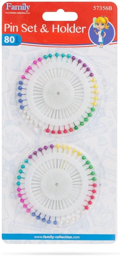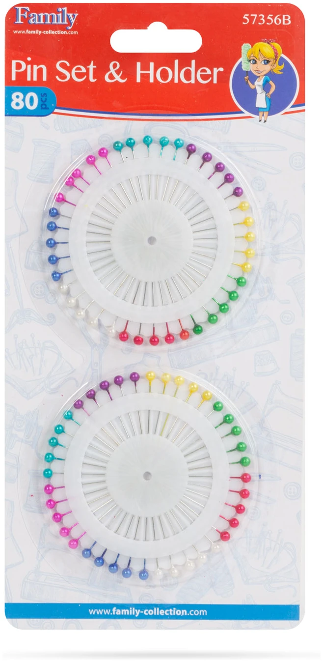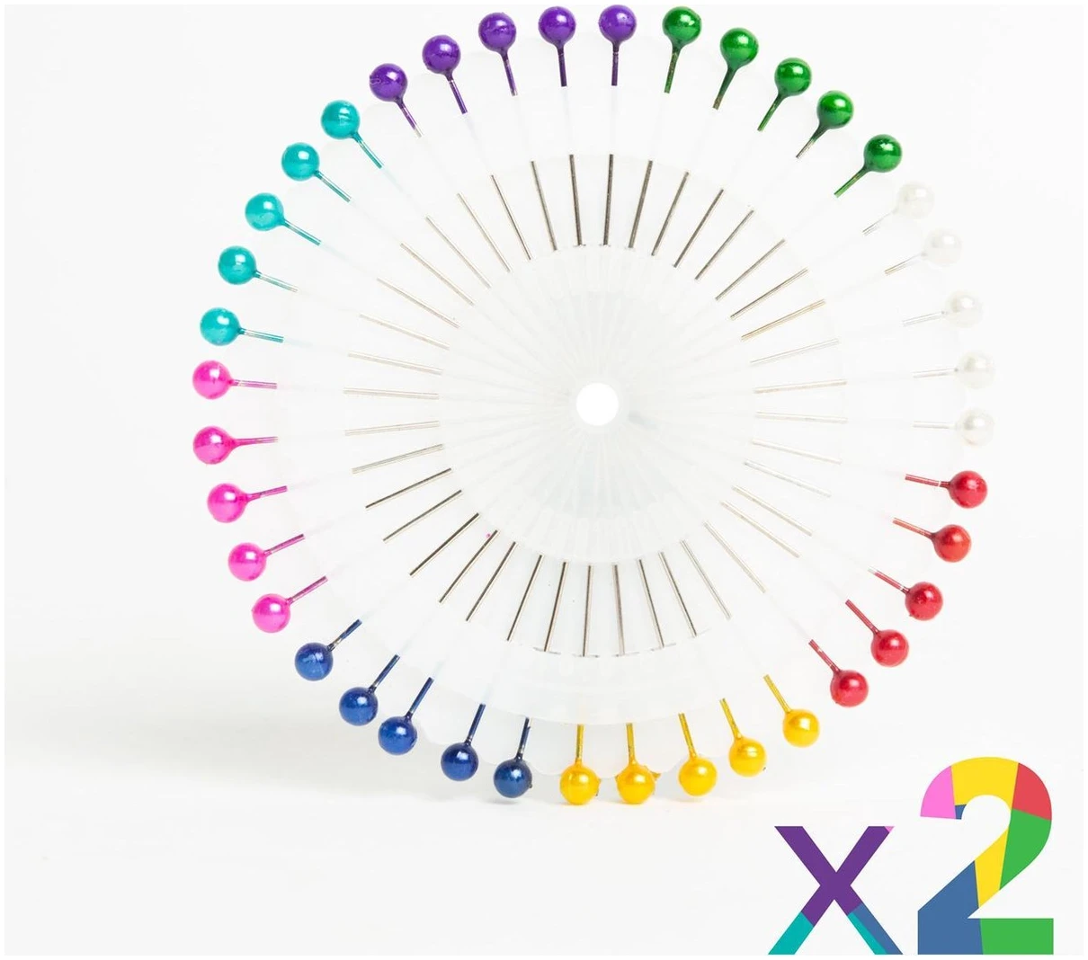 Set ronde spelden met plastic kop! De set bevat twee doosjes met in totaal 80 pinnen.