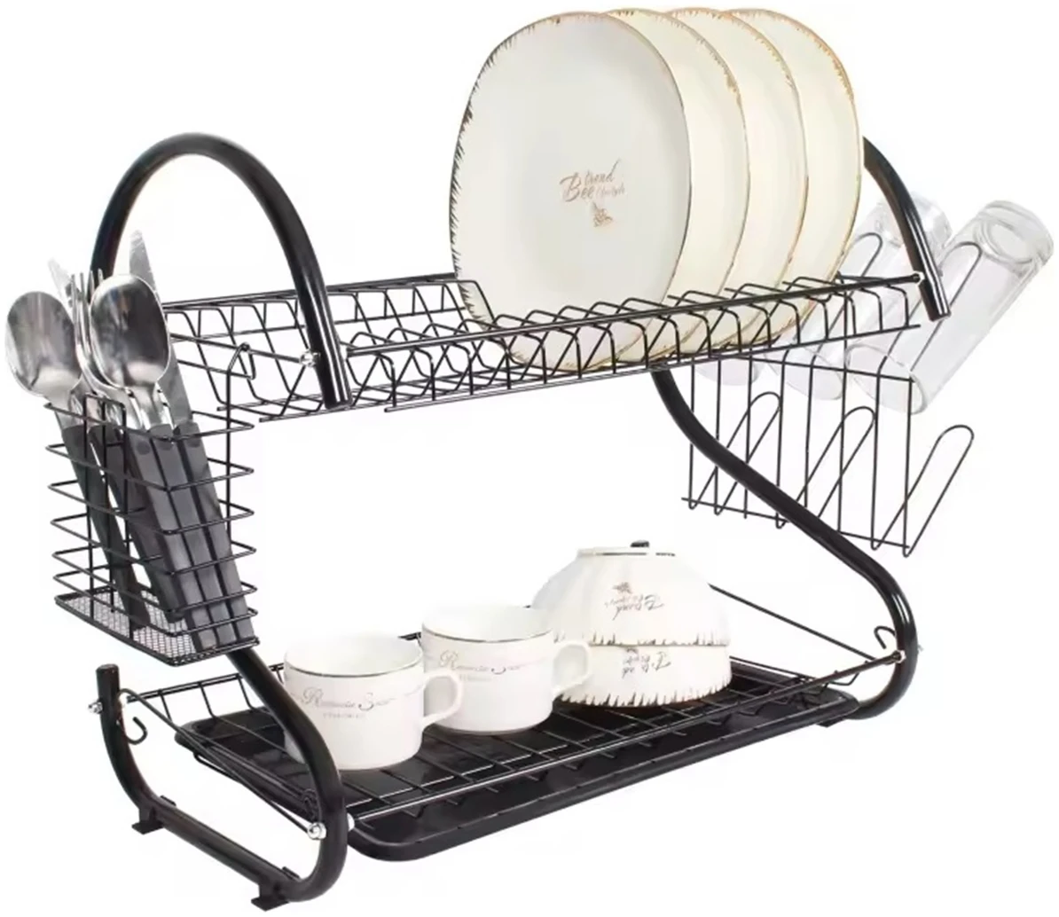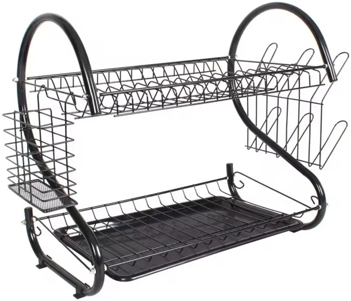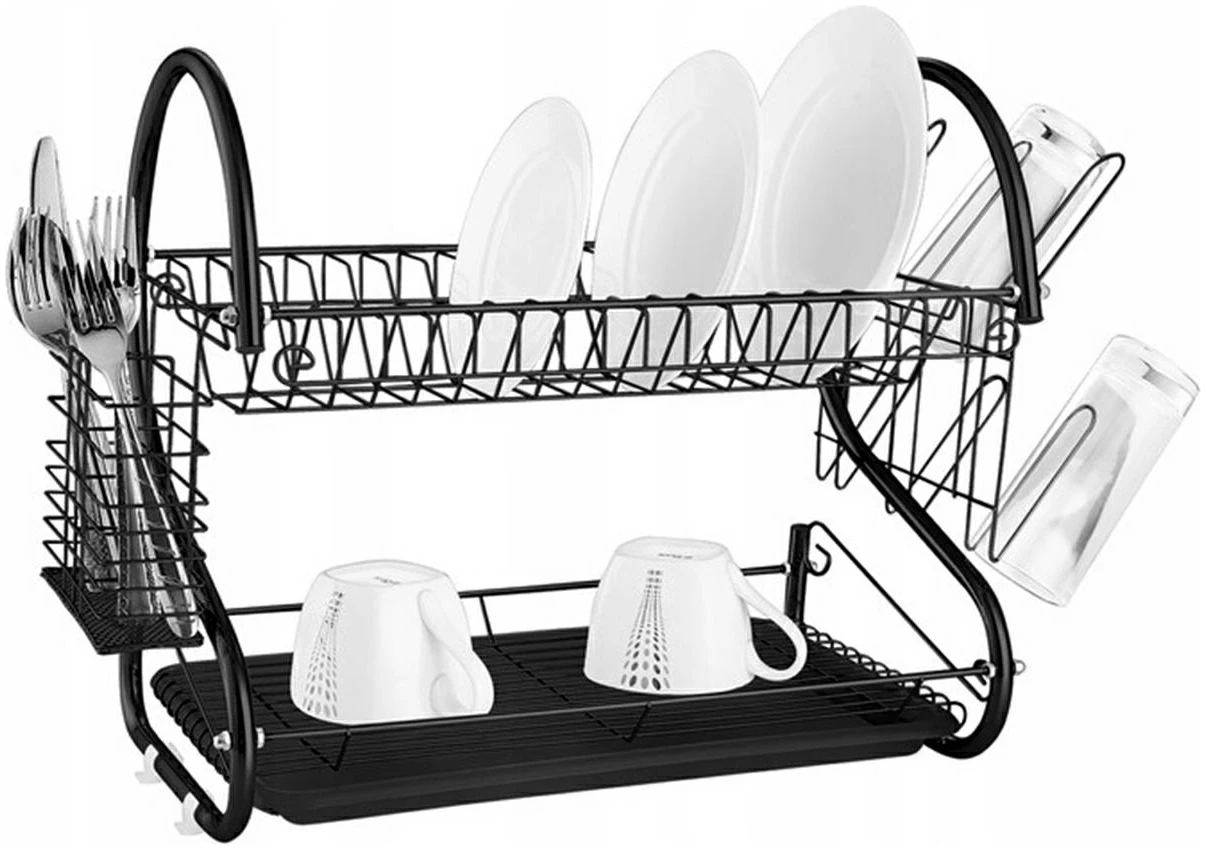 Borden- en bestekdroger met twee niveaus en afdruiprek. Op de bovenste verdieping kunnen gemakkelijk maximaal 15 borden worden geplaatst. Op het lagere niveau kunt u uw glazen en kopjes netjes ordenen. Hij is extreem ruim en onmisbaar in elke keuken! Er past een servies en bestekset in voor alle leden van het huishouden! Dankzij het compacte formaat verberg je hem gemakkelijk in het keukenkastje! Het heeft een aantal extra, verwijderbare elementen, b.v. een plastic bakje dat water opvangt, een extra bestekafdruiprek en een externe hanger die plaats biedt aan maximaal 6 glazen. Dit is een echte keukencombinatie die alle gerechten in uw keuken effectief zal organiseren!