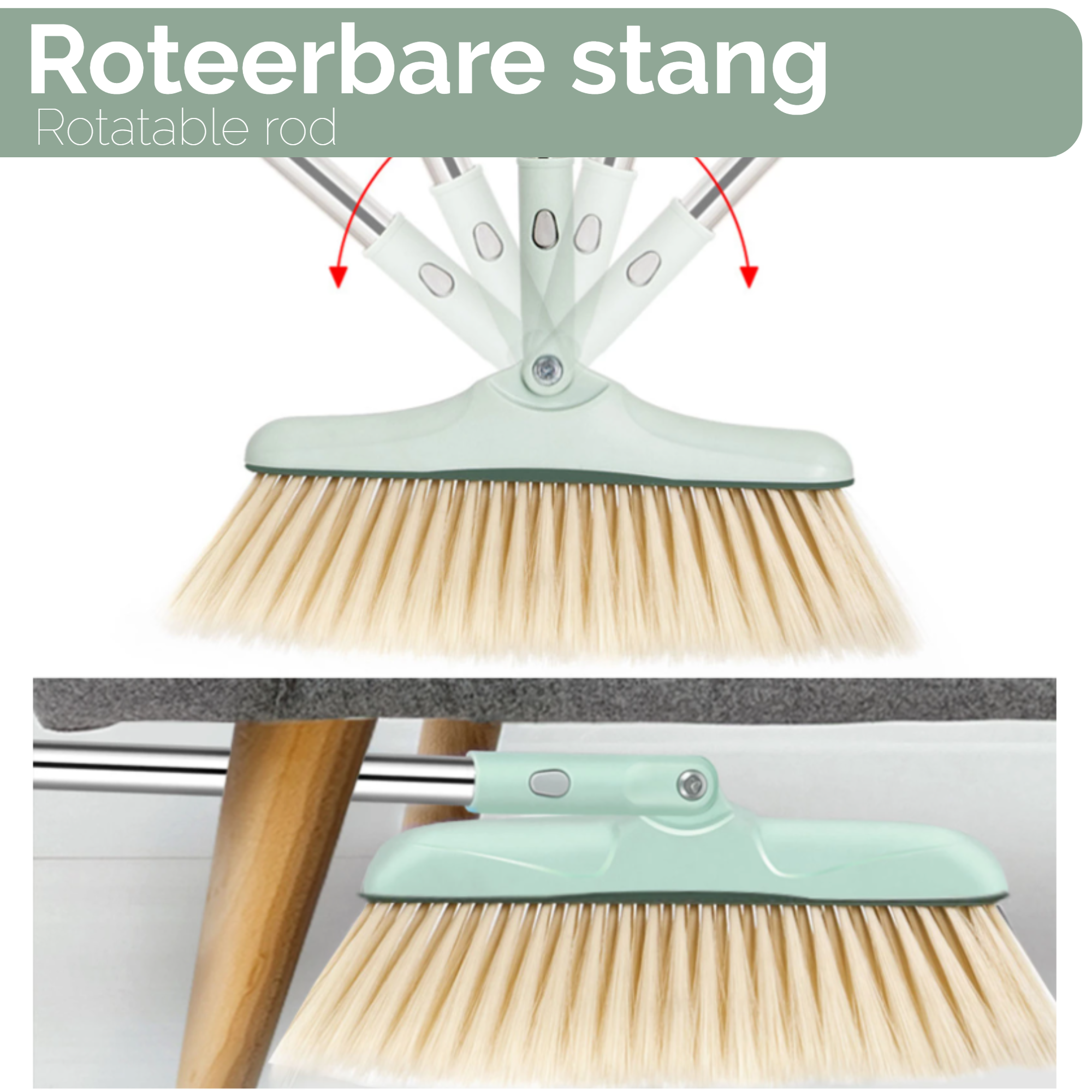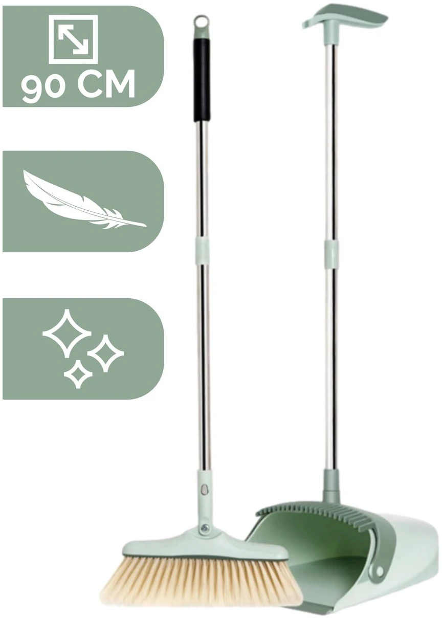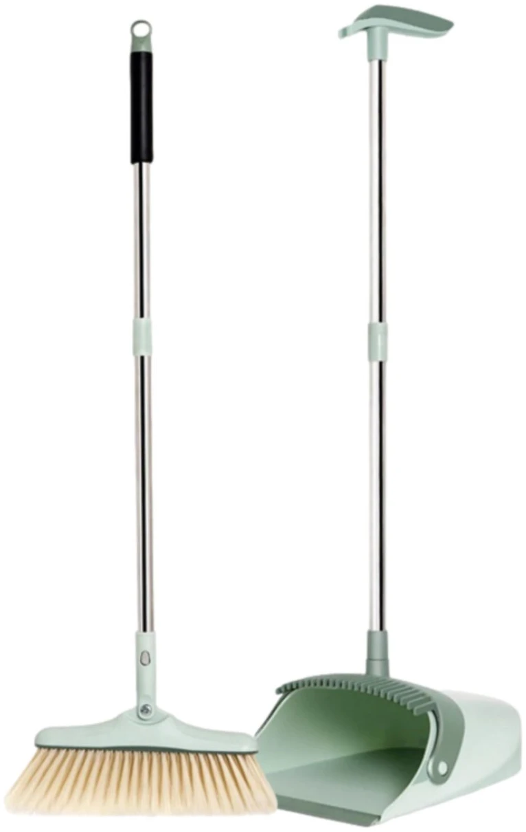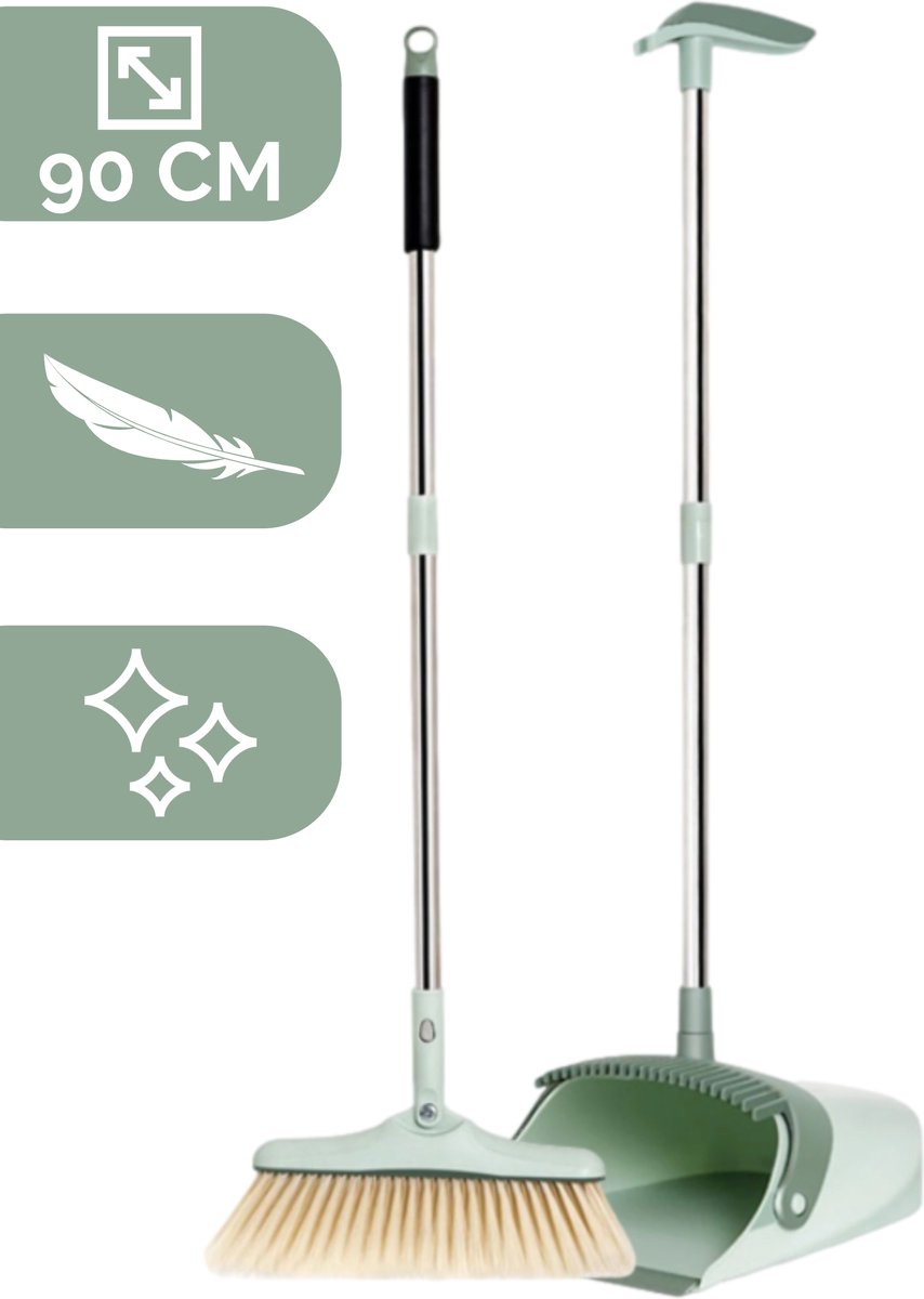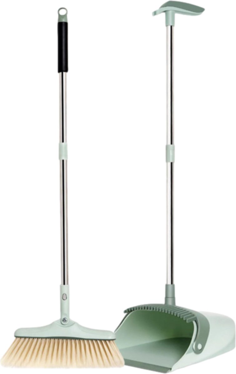 Makkelijk en snel vuil opvegen zonder te bukken? Dát kan met deze uiterst handige stoffer en blik systeem van Family Pound. Deze stoffer en blik met lange steel hebben een prachtige pastelkleur groen en is makkelijk op te bergen wanneer je de set even niet gebruikt.