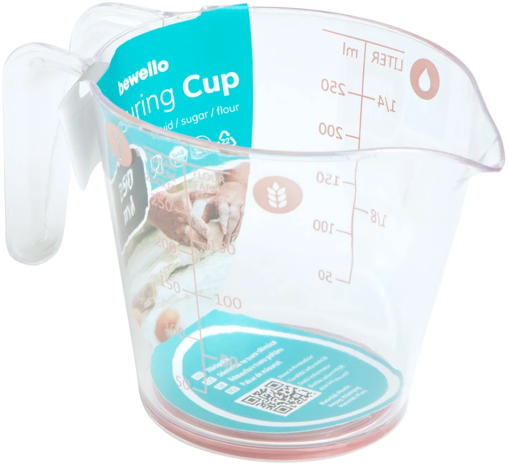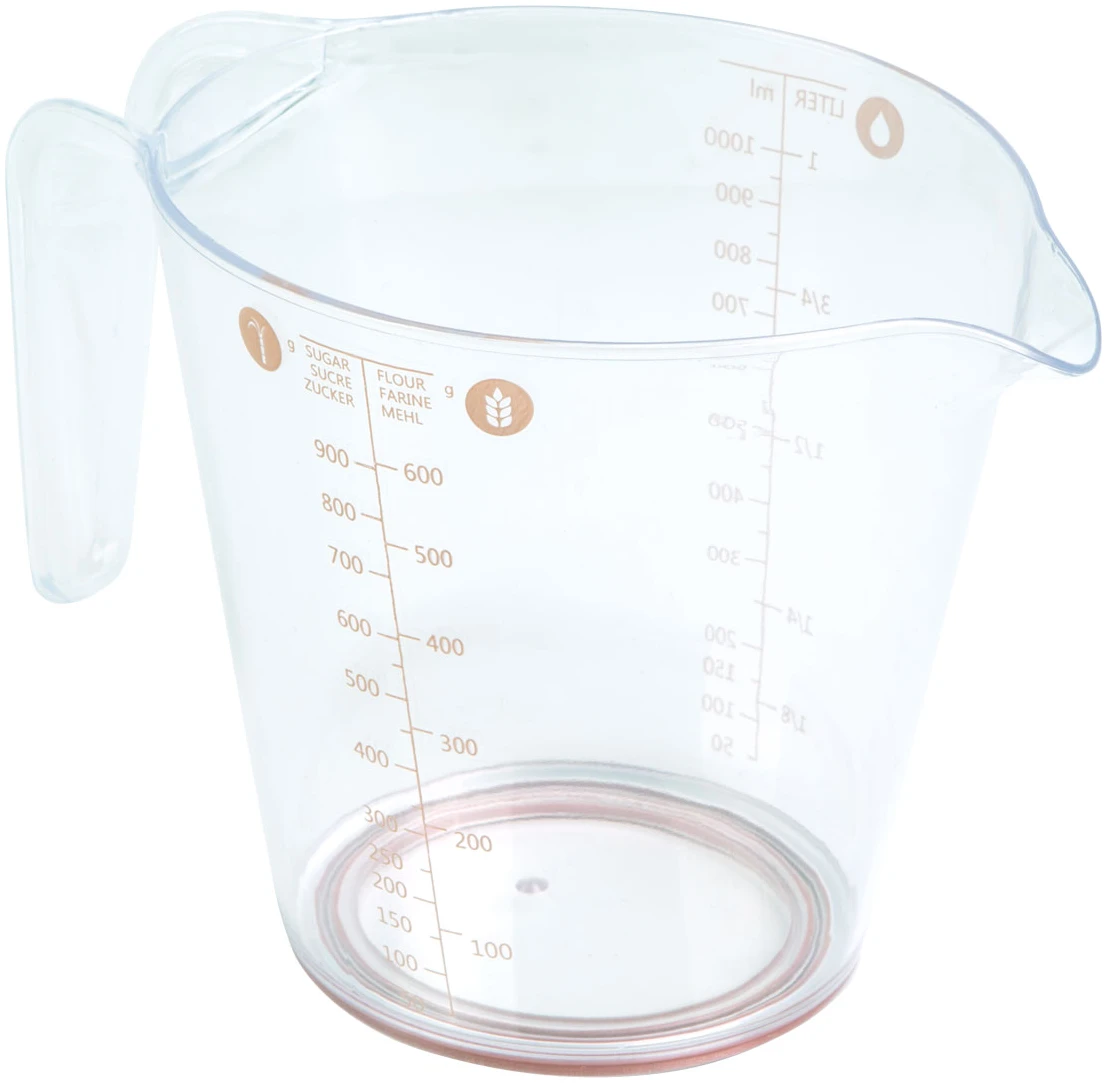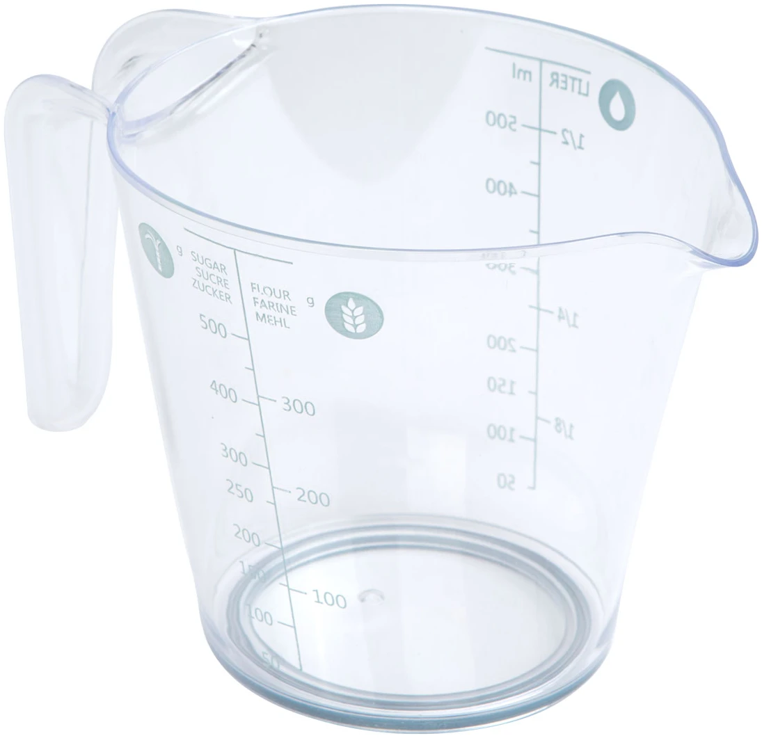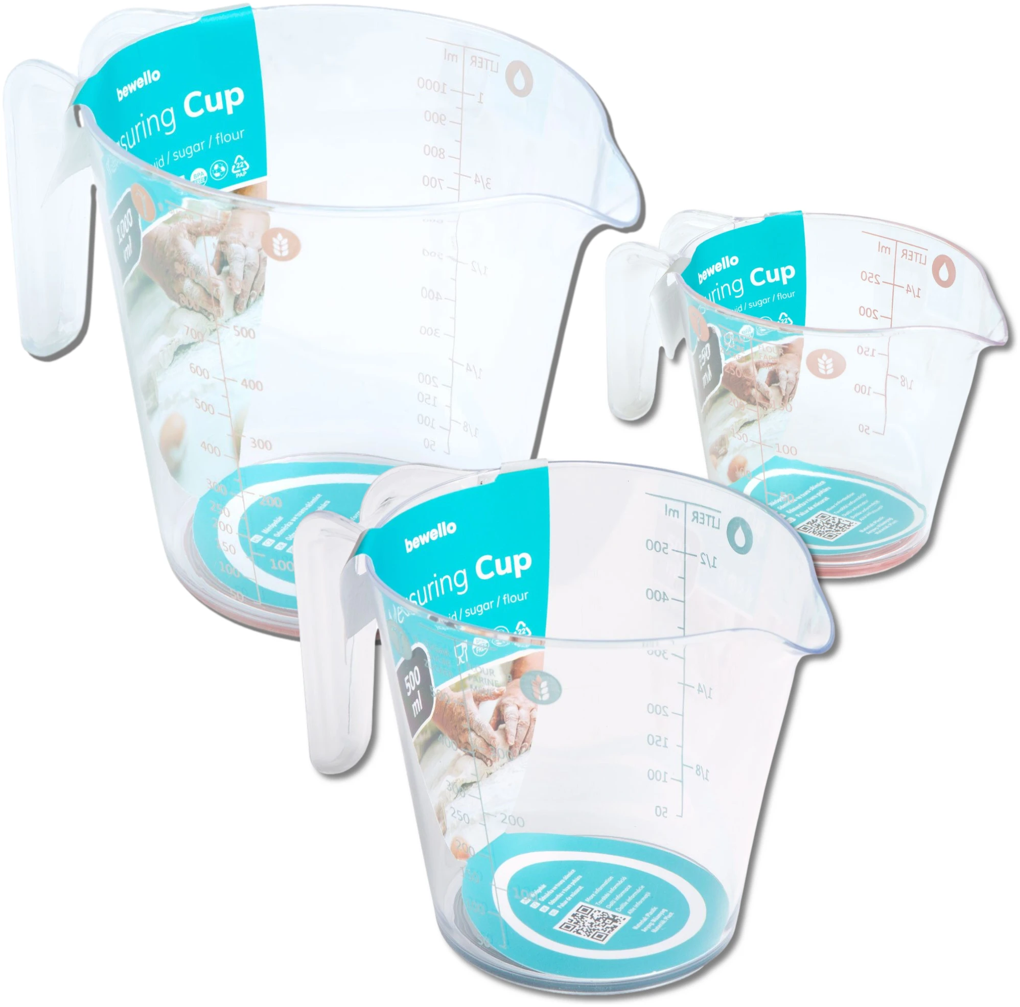 De bekers worden geleverd in een praktische set van 3, met een inhoud van 250ml, 500 ml en 1 liter en elk met een druppelvrije schenktuit.