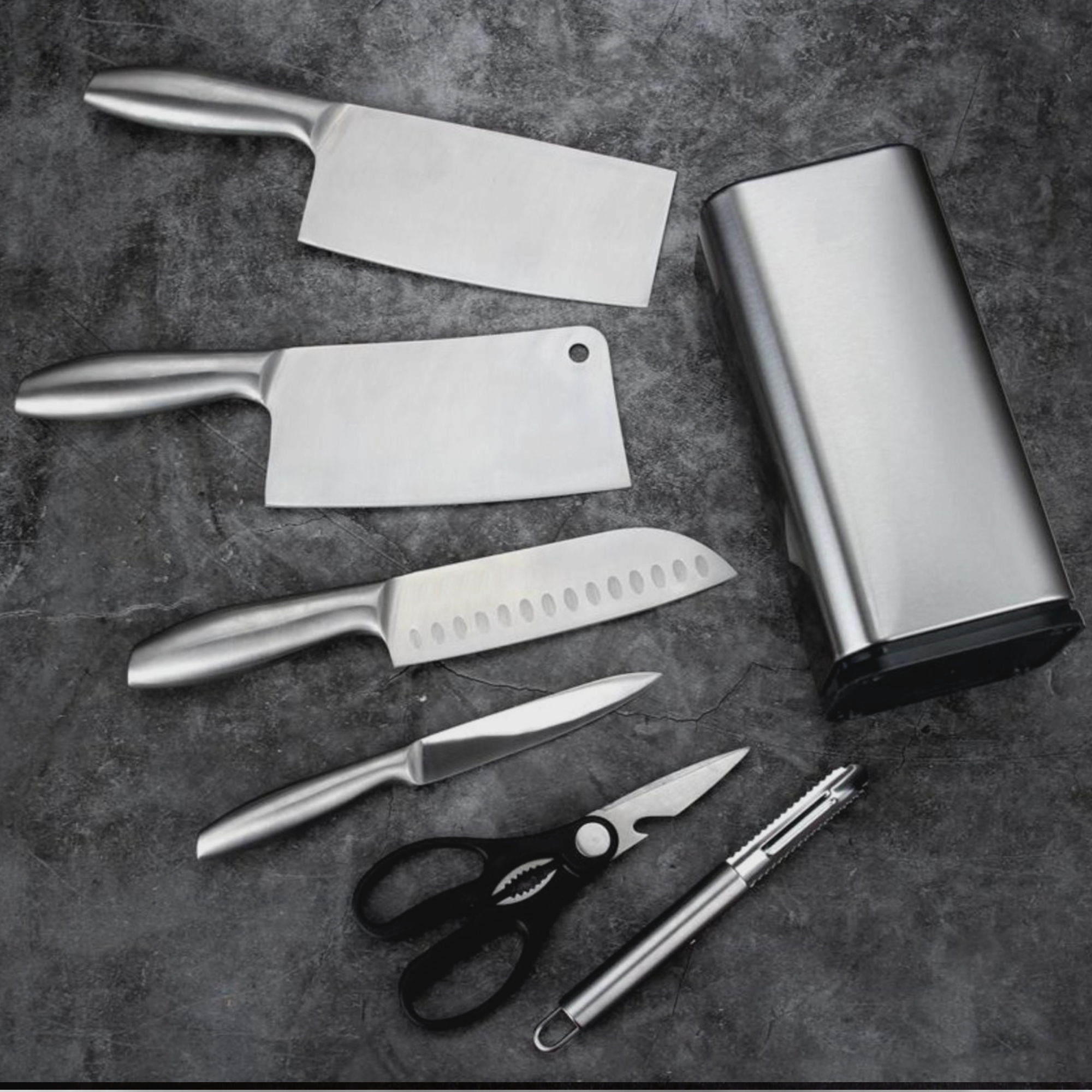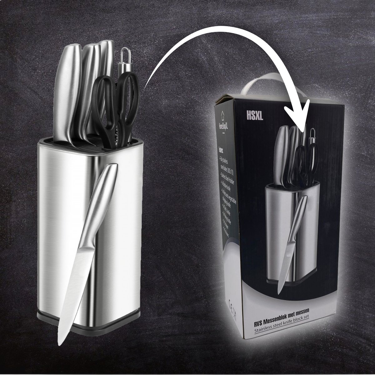 Als je dol bent op koken, is deze prachtige messenset hét missende onderdeel in jouw keuken! Het messenblok en de messen zijn vervaardigd uit hoogwaardig RVS en zijn hierdoor vlijmscherp! Het blok bevat de meest essentiële keukenbenodigdheden.