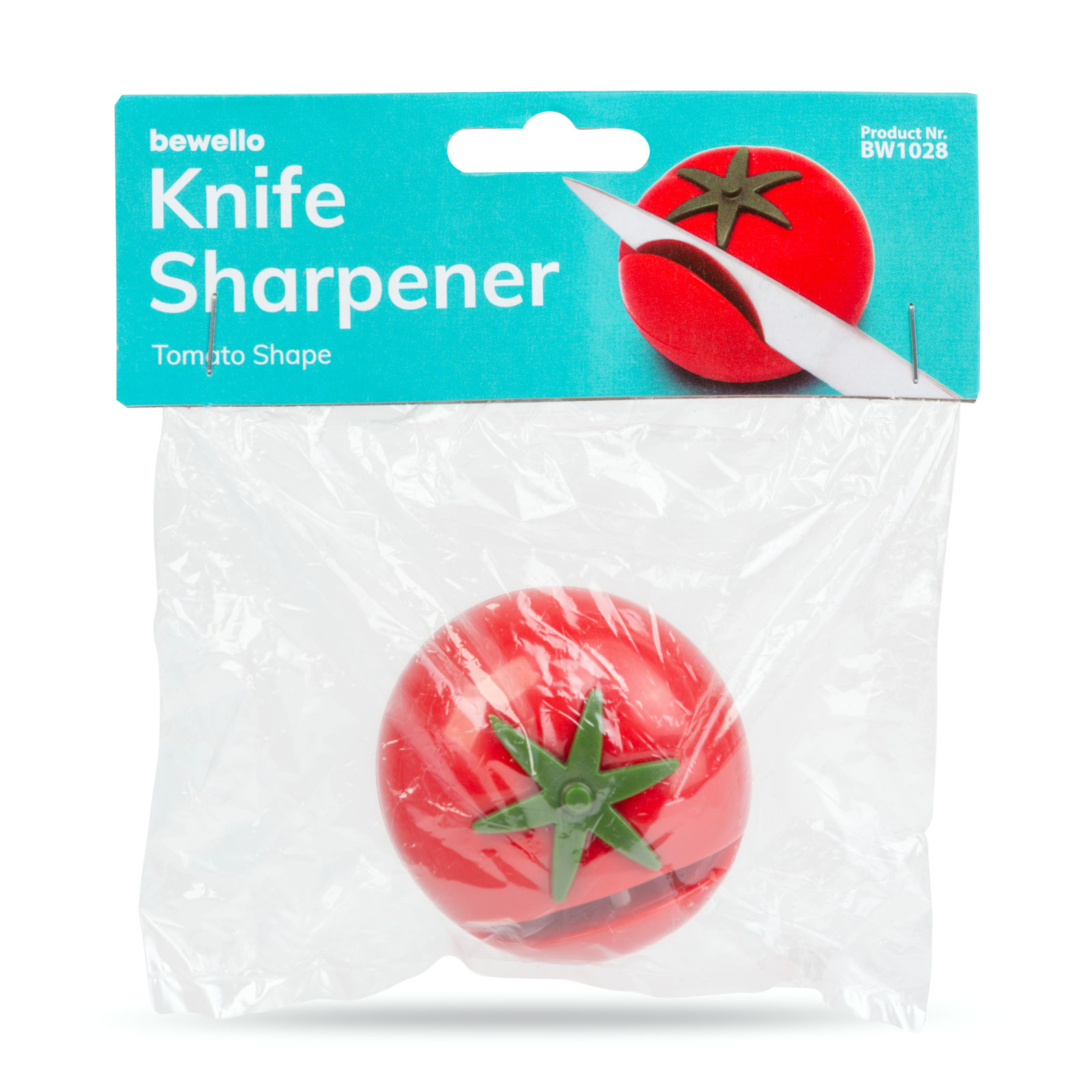 Maat: Ø60 x 45 mm Vorm: Tomaat Wetstenen: 2 stuks ingebouwd Materiaal: Plastic Kleur: Rood Gewicht: ~42 gram