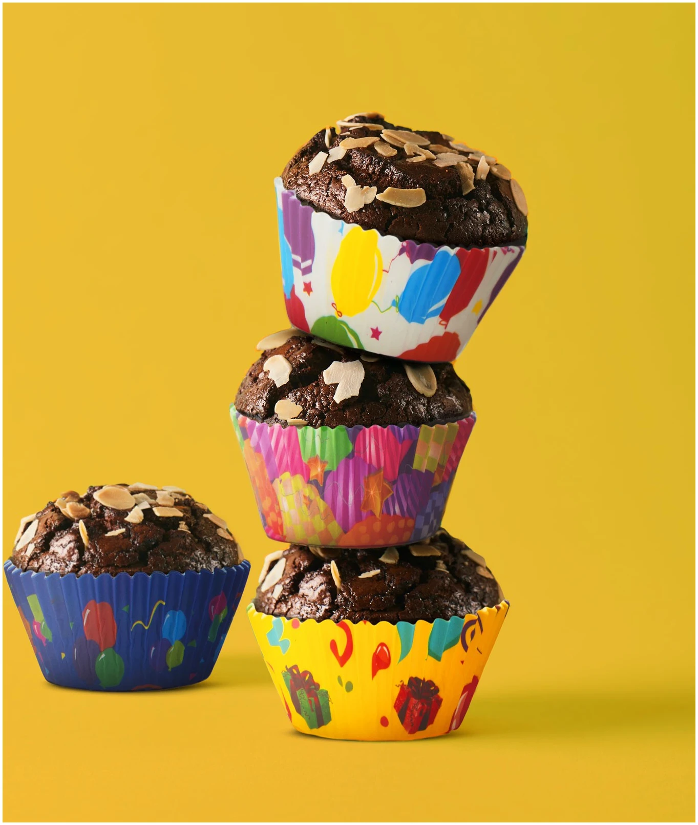 Houd je van bakken en koken en zijn muffins je favoriet? Maak je taarten nog mooier met deze kleurrijke muffinpapiertjes met feest- en ballondesign!