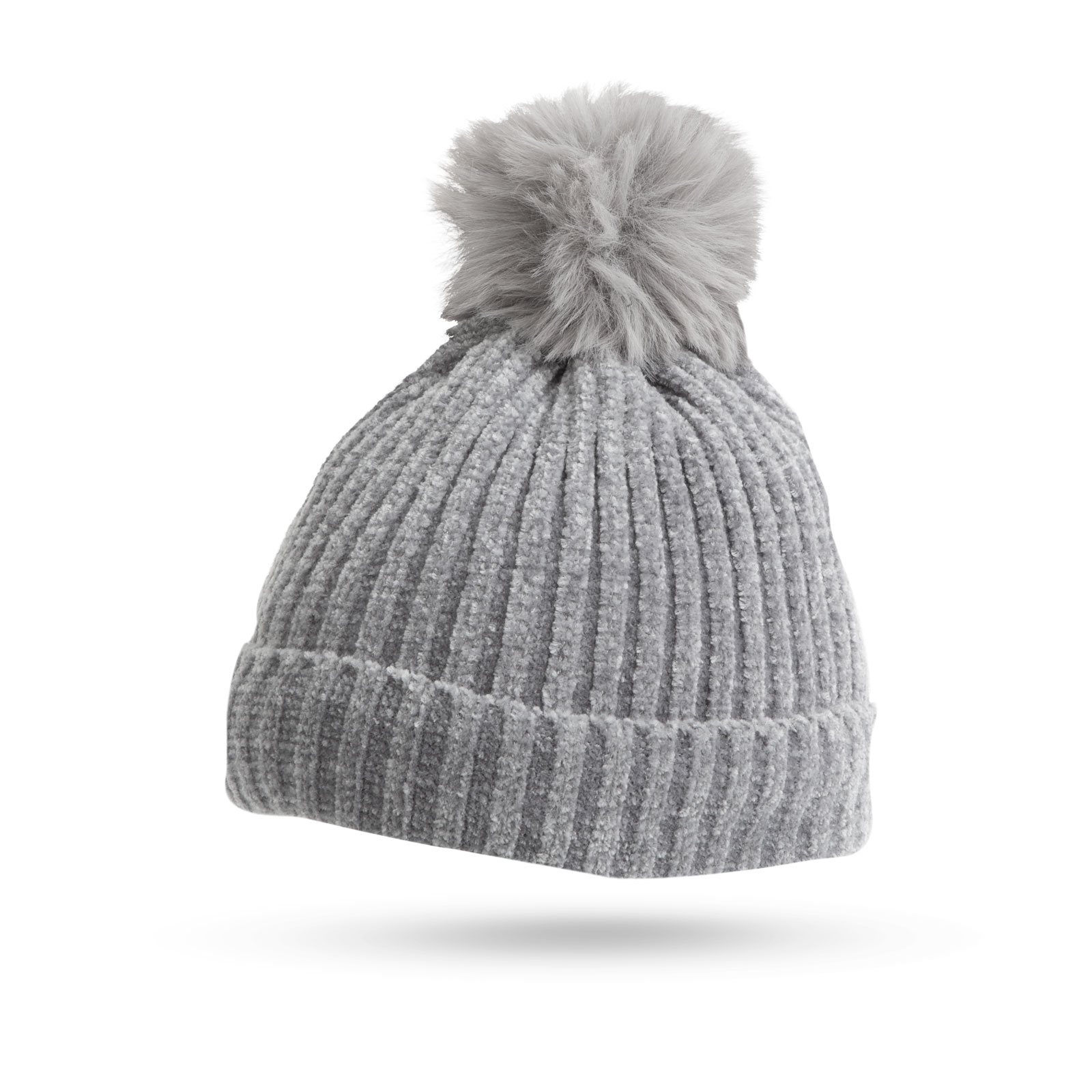 Dikke wintermuts – met bontbal – grijs 1 Stuks [W1061C]