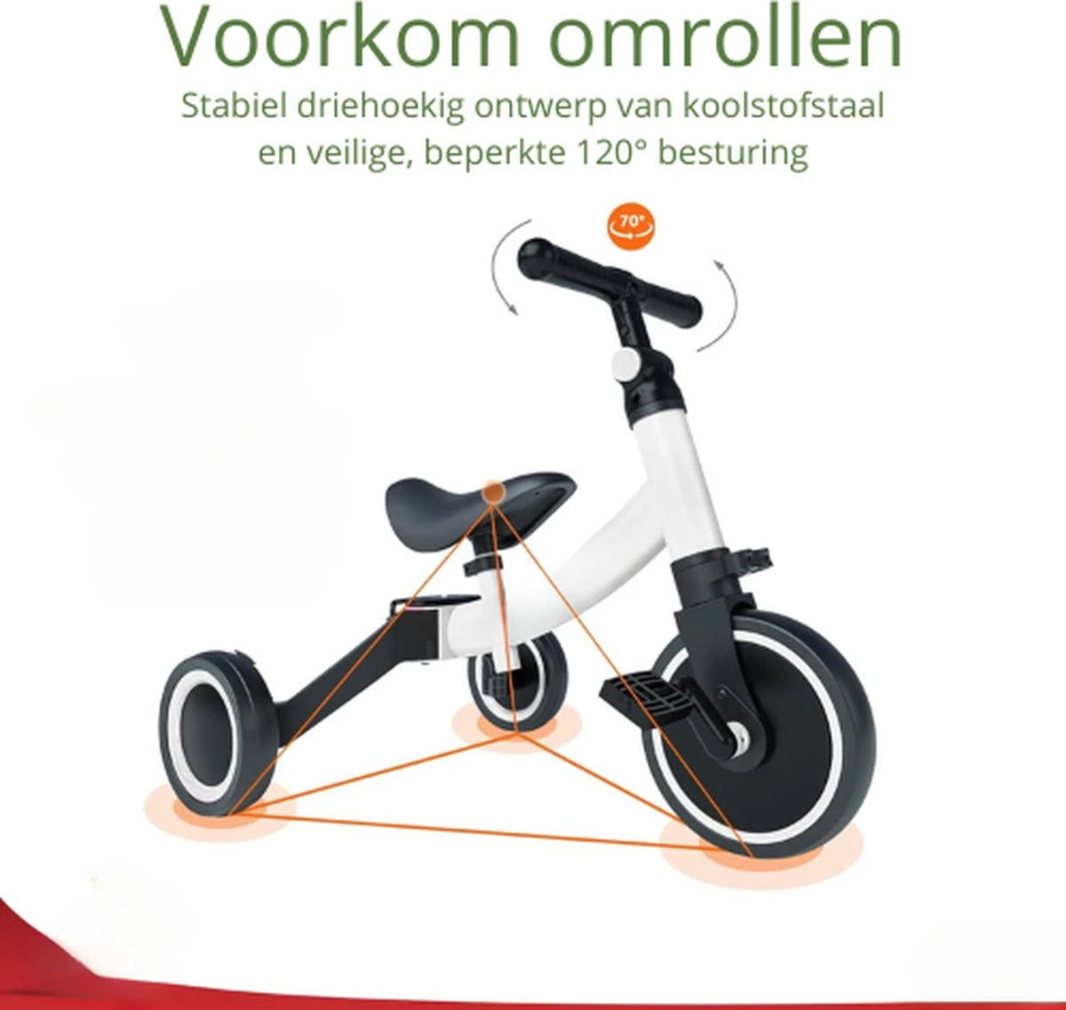 De 3-in-1 Driewieler groeit mee met je kind! Met drie verschillende standen – driewielerstand (grote/kleine hoek), slipstand en loopwielstand (grote/kleine hoek) – kun je moeiteloos de perfecte modus kiezen voor elke fase van je kleintje’s ontwikkeling. En met één simpele klik kan het pedaal snel worden gedemonteerd voor ultieme flexibiliteit.