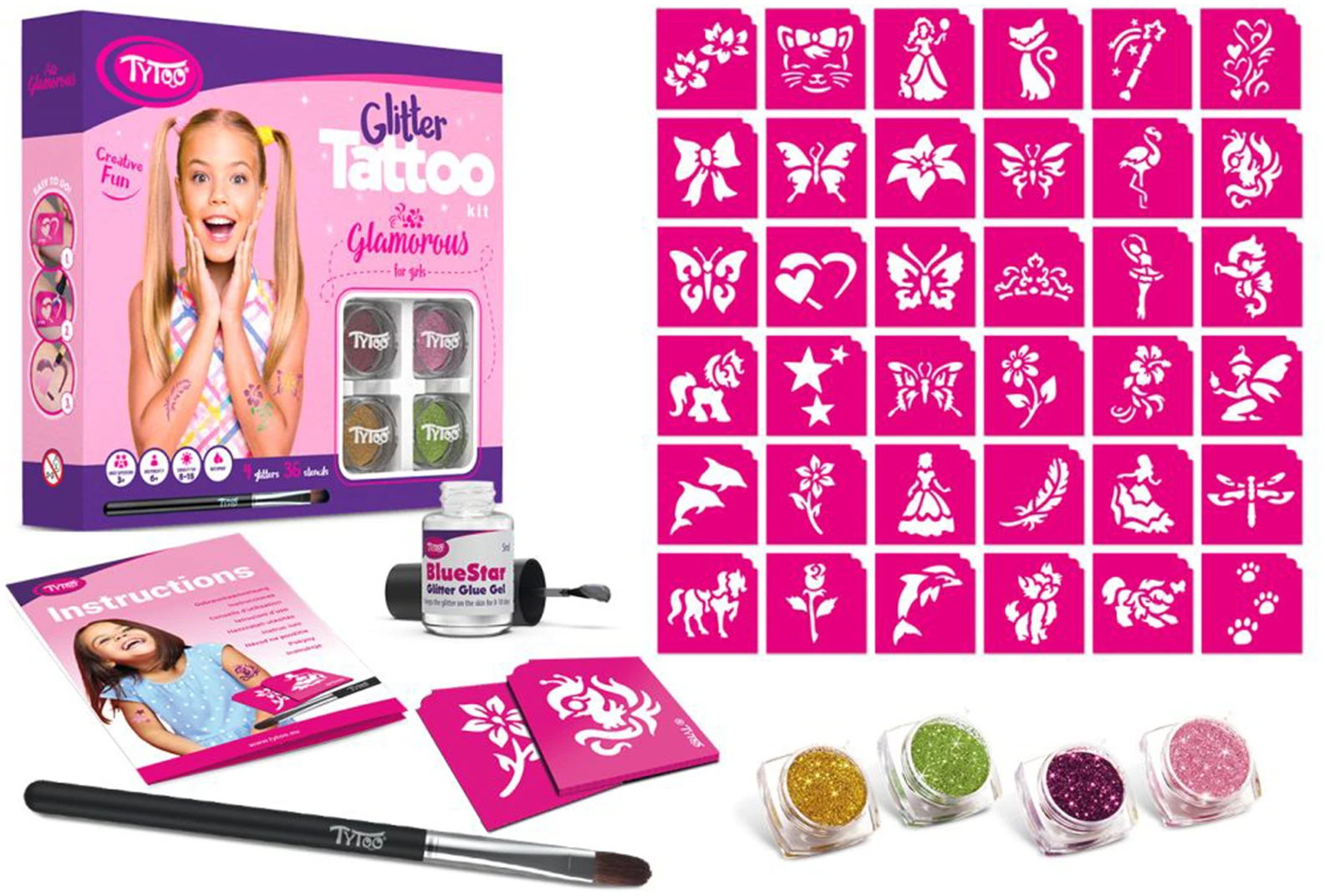 TyToo glittertattoos kunnen ook veilig door kinderen worden gebruikt, omdat het cosmetische kwaliteitsmaterialen bevat die voldoen aan de EU-regelgeving. Het aanbrengen is eenvoudig, zelfs een kind van 6 kan zijn eigen glittertattoo maken. Bovendien kun je tijdens het maken zelfs je vaardigheden verbeteren. De sjablonen zijn speciaal ontworpen voor de kleine armpjes van je kind. Je kunt dus gemakkelijk je eigen kleine glittertattoo’s maken, maar samen plezier hebben kan nog leuker voor ze zijn!