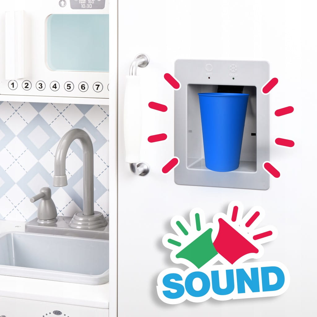 Dankzij een afneembare gootsteen (gemaakt van plastic) kunt u deze met water vullen, zodat het kind na de maaltijd de afwas kan doen. We raden echter aan voorzichtig te zijn als u houten elementen in contact brengt met water, omdat deze hierdoor kapot kunnen gaan.