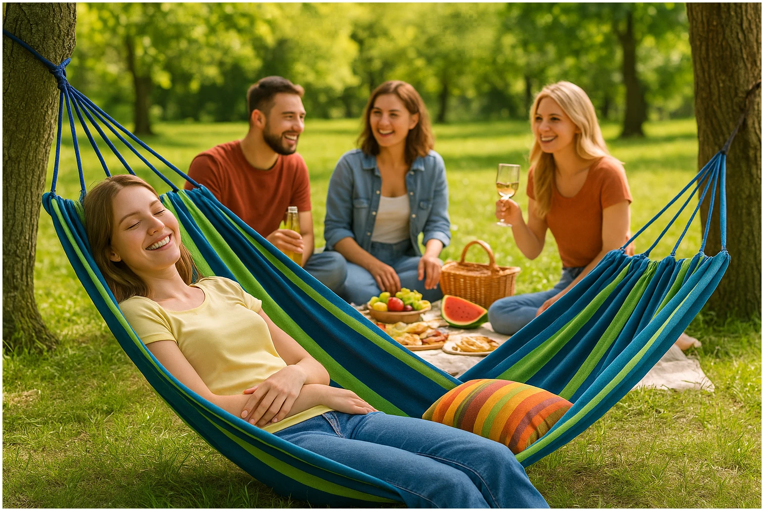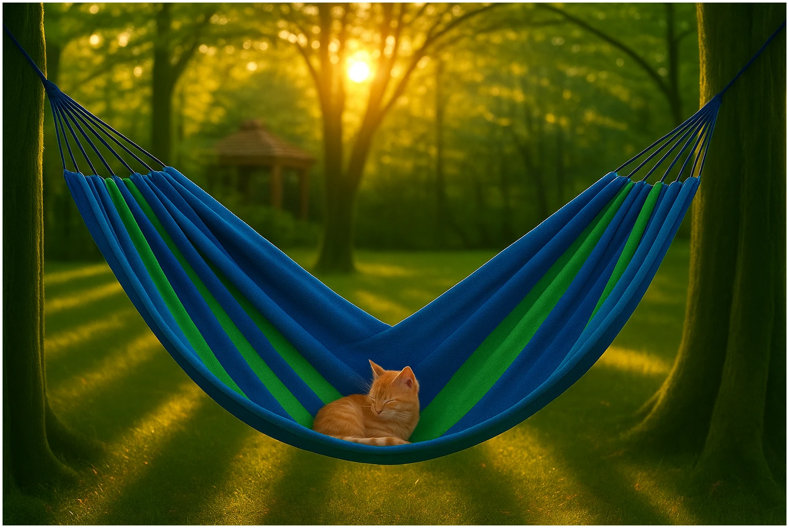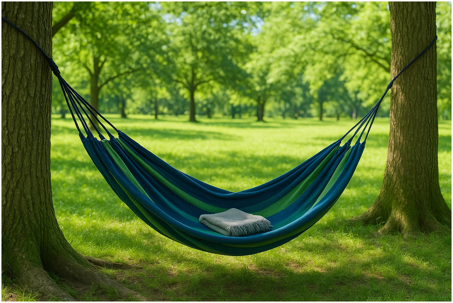 Afbeelding van HSXL Dubbele Hangmat Blauw met Touwen - 1 of 2 Persoons - Lig Oppervlak 190x150cm - Lengte 260cm - ffa3 c05a