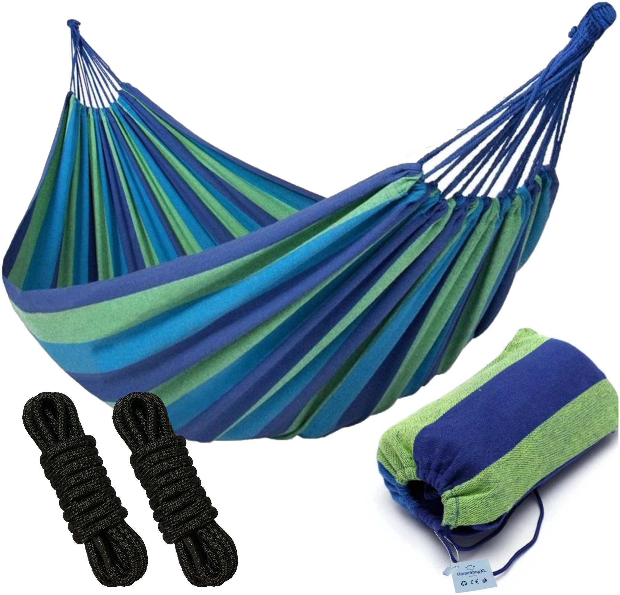 HSXL Dubbele Hangmat Blauw met Touwen – 1 of 2 Persoons – Lig Oppervlak 190x150cm – Lengte 260cm