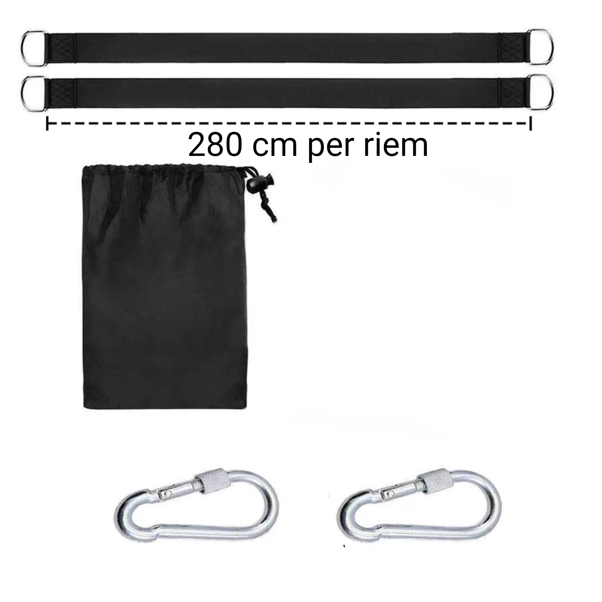 - Stevige bevestigingsbanden voor het ophangen van schommel en hangmat.