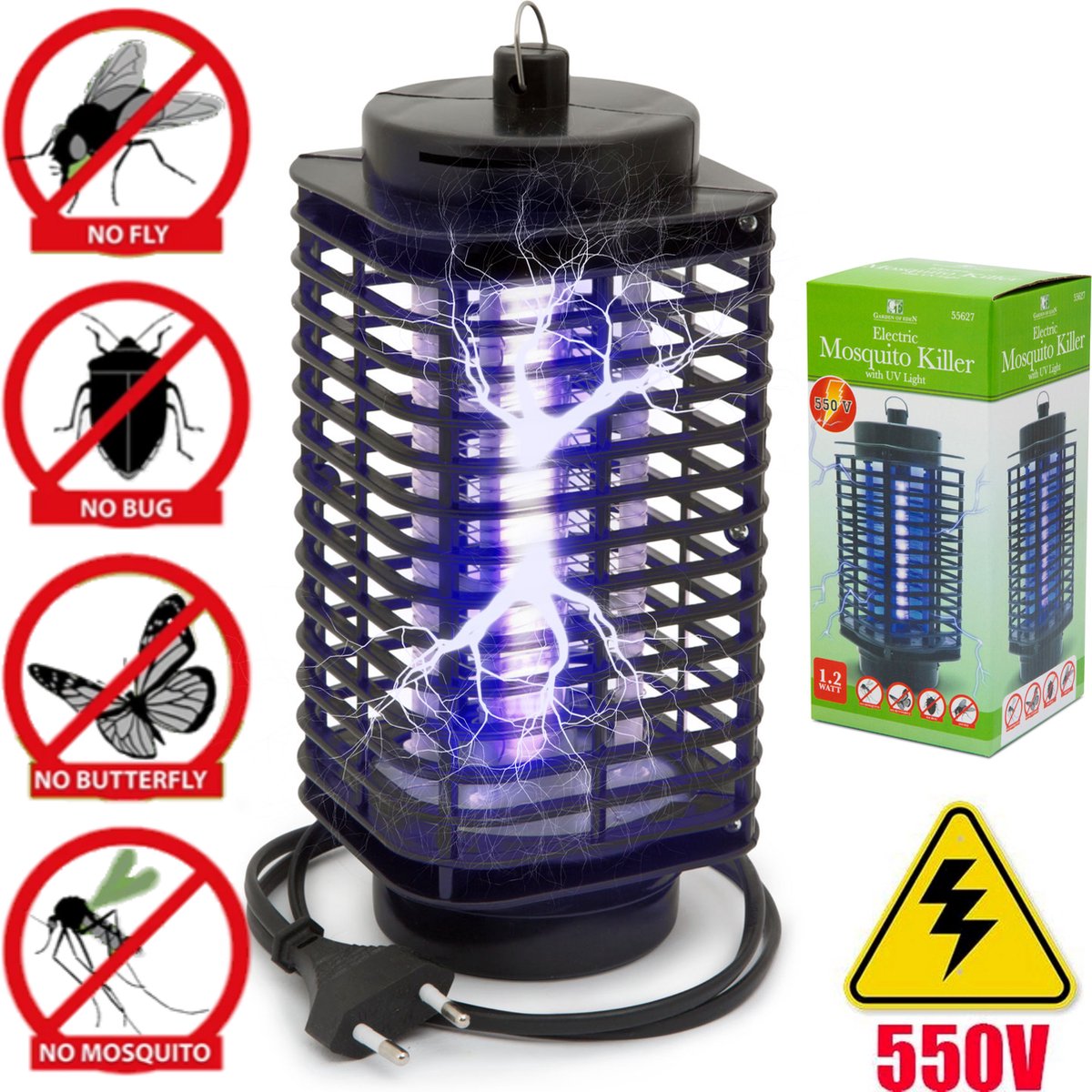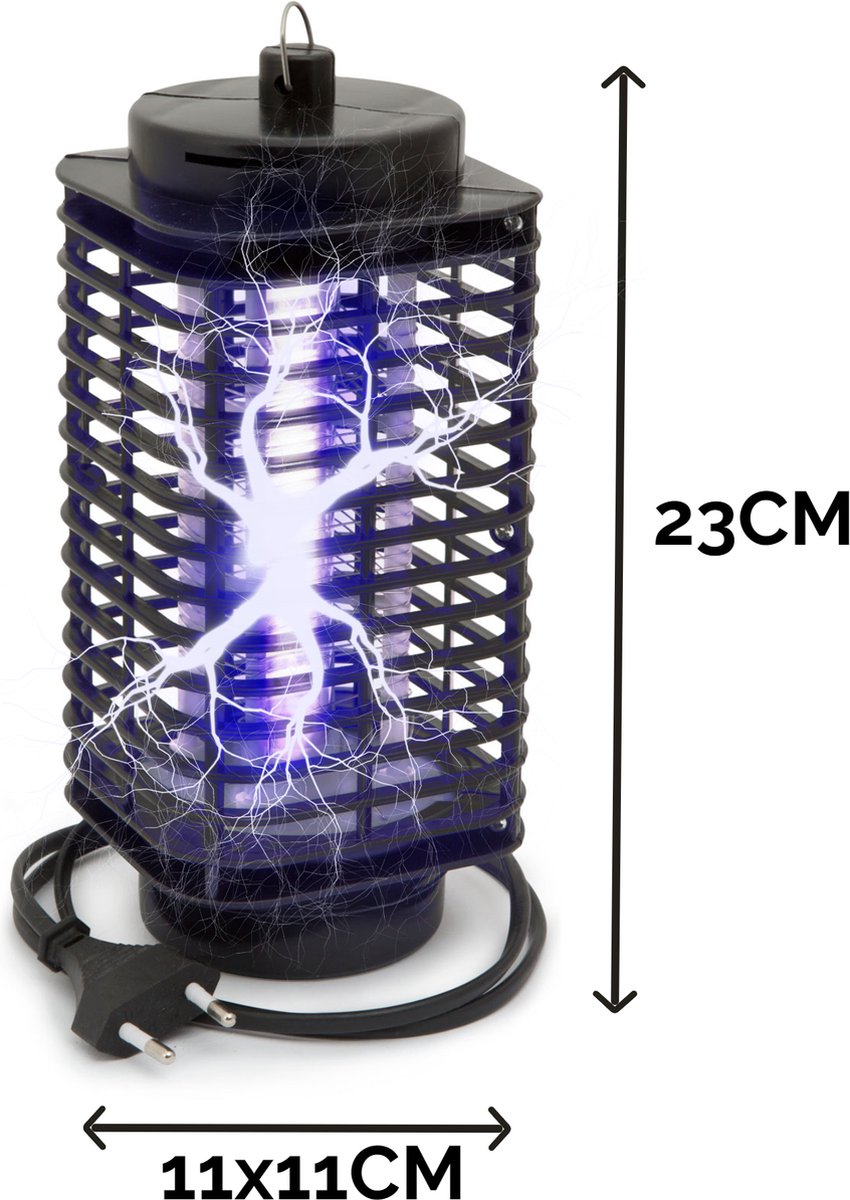 Onaangename insecten (bijv. muggen) en kleine vliegjes worden aangetrokken door het ultraviolette licht en gaan zo hun einde tegemoet. Op weg naar de lichtbron vliegen ze naar de elektroden die onder stroom staan met maar liefst 550 Volt en het doodt ze snel, pijnloos en hygiënisch. Ze vallen dan in de opvangbak onderin het apparaat. Ideaal voor op de slaapkamer, maar ook bijvoorbeeld onder de overkapping kan deze insectenlamp een perfecte uitkomst zijn!