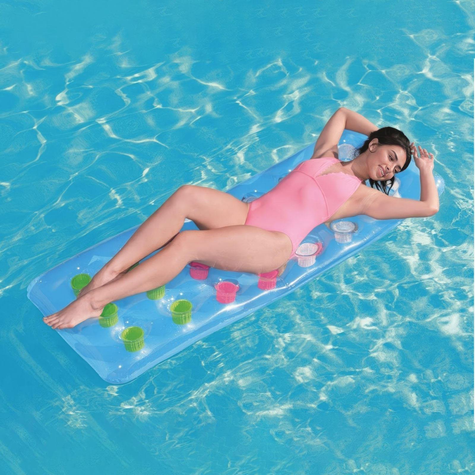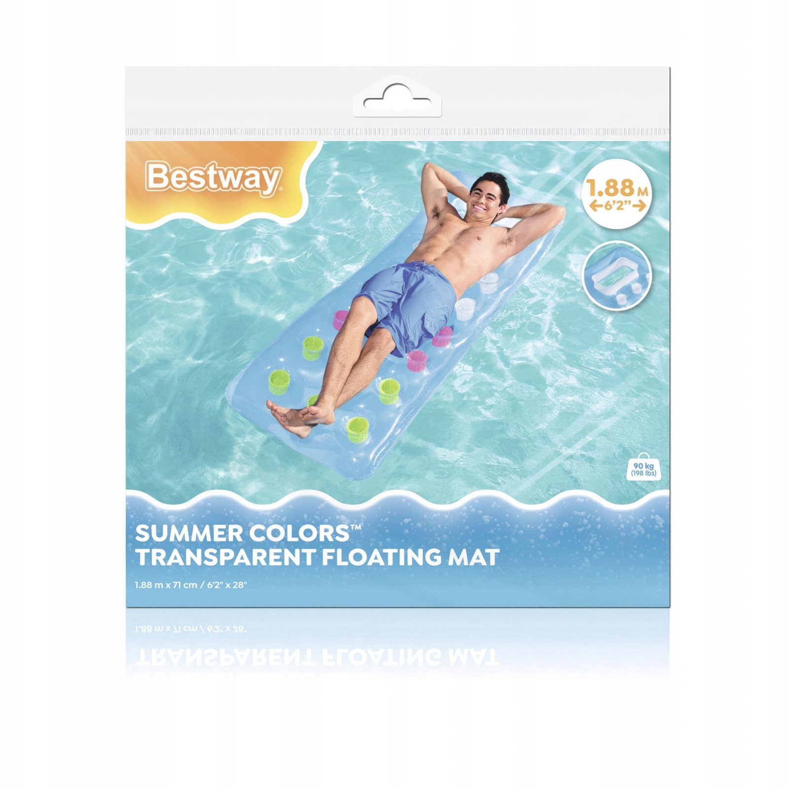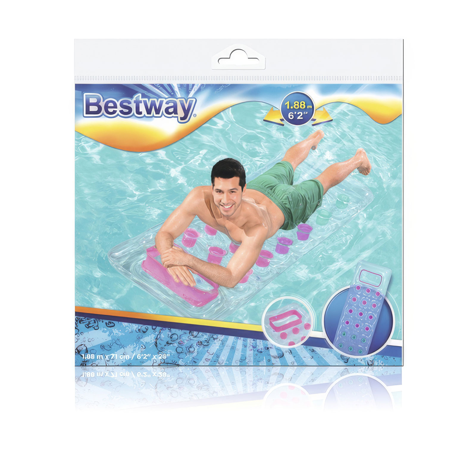 Onze opblaasbare drijfmat is een geweldige aanvulling op je zomerse wateravonturen! De matras is 188 x 71 cm groot, ideaal voor een comfortabel verblijf met het hele lichaam. Hij is gemaakt van hoogwaardig PVC voor duurzaamheid en stabiliteit. Dankzij het compacte formaat is hij gemakkelijk op te blazen en te vervoeren.