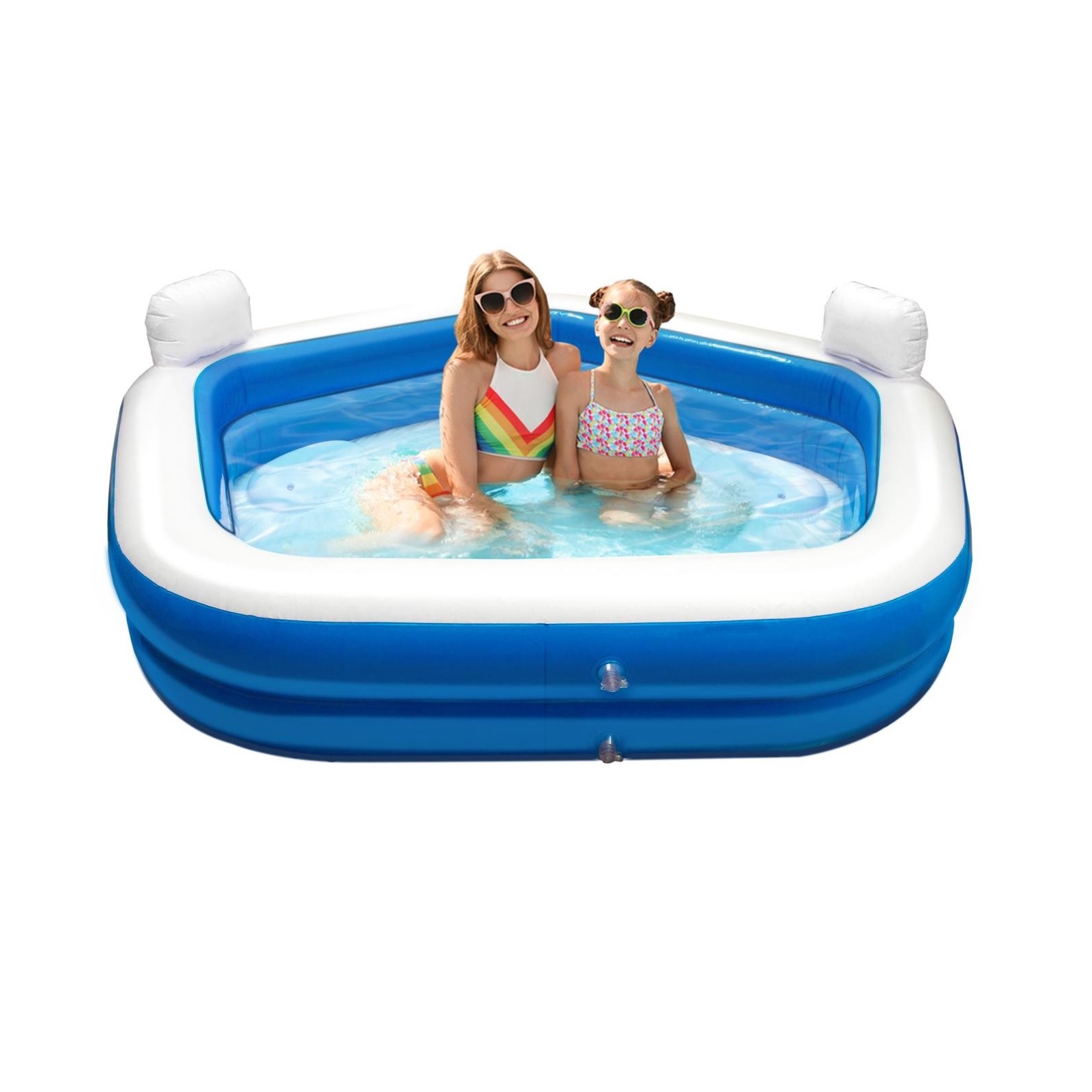 Het Creative Kids opblaasbare familiezwembad voor twee personen is de ideale keuze om af te koelen en te ontspannen in de zomer. Dankzij het comfortabele ontwerp kan het hele gezin heerlijk spetteren. 2 ingebouwde hoofdsteunen en 2 bekerhouders zorgen voor zorgeloos ontspannen. De zwembanden zijn apart op te blazen, wat het zwembad gebruiksvriendelijker en veiliger maakt. Door het compacte gewicht en formaat is het gemakkelijk te vervoeren en op te bergen.
