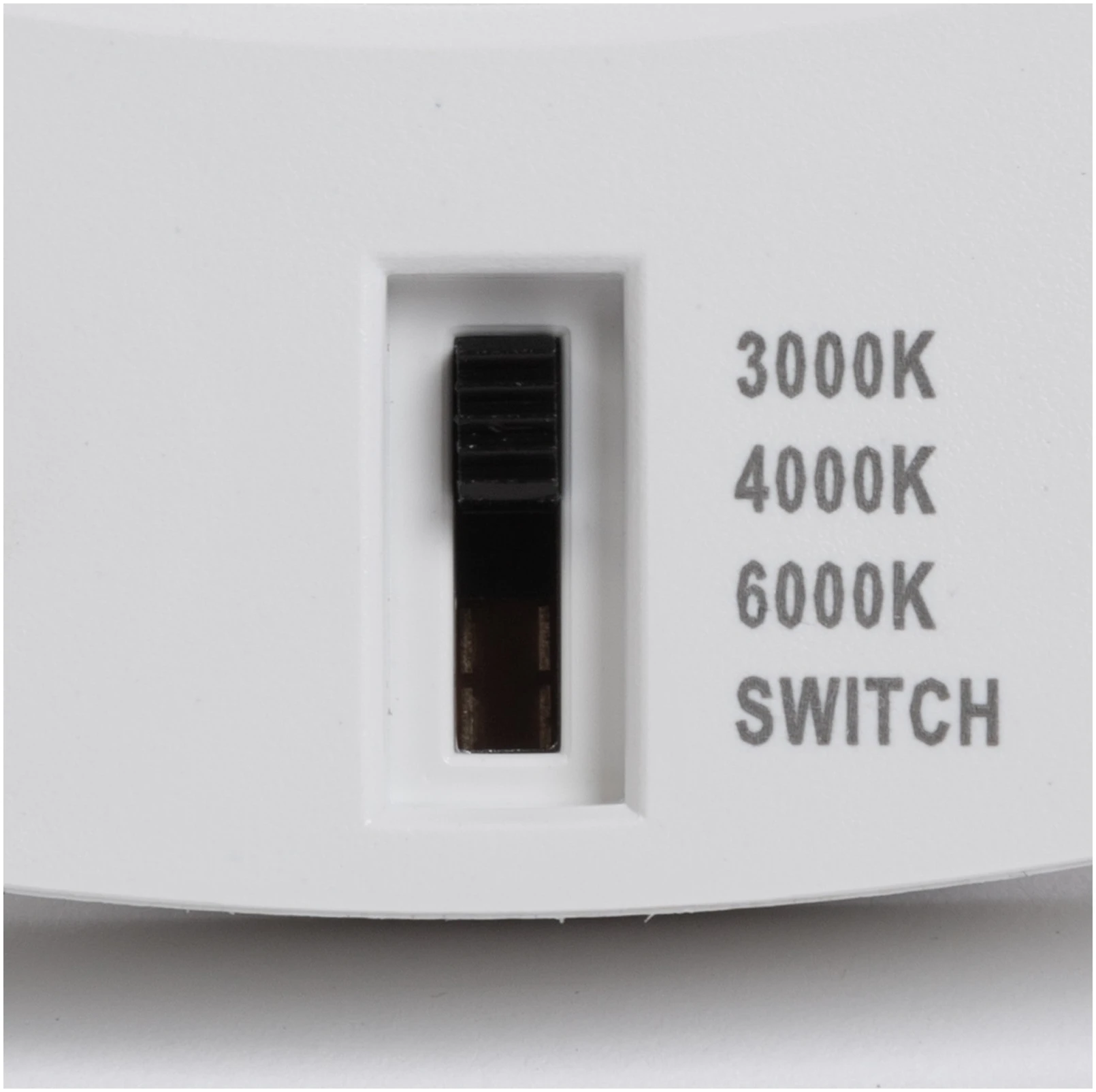 Een ronde lamp die de gewenste ruimte verlicht met leds met instelbare kleurtemperatuur. De lamp kan eenvoudig worden geïnstalleerd aan een plafond, gipsplaat of zelfs aan een zijwand met behulp van de meegeleverde beugel. De ronde vorm geeft de kamer een moderne en strakke uitstraling, terwijl de discrete witte kleur harmonieus past in de meeste interieurs.